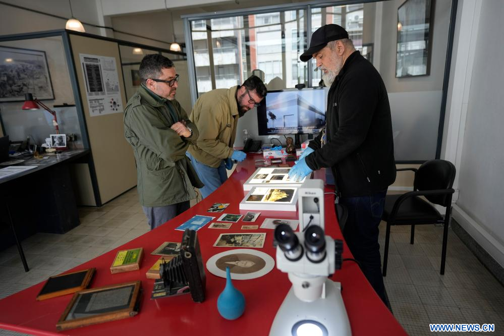 MONTEVIDEO, 19 agosto, 2023 (Xinhua) -- Un fotógrafo explica sobre procesos antiguos de la fotografía en el marco del Día Internacional de la Fotografía en el Centro de Fotografía de Montevideo, en Montevideo, capital de Uruguay, el 19 de agosto de 2023. (Xinhua/Nicolás Celaya)
