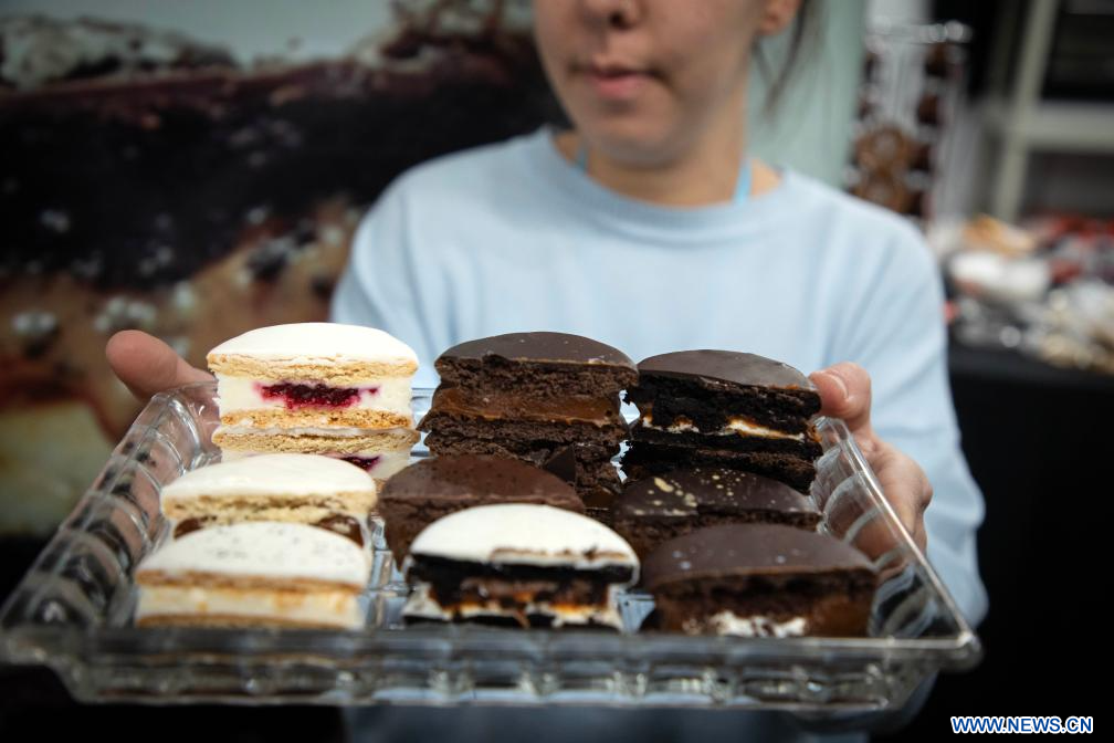 BUENOS AIRES, 19 agosto, 2023 (Xinhua) -- Una empleada muestra distintos sabores de alfajores en un estand durante la Feria Argentina del Alfajor en el marco de la segunda edición del Campeonato Mundial del Alfajor, en la ciudad de Buenos Aires, capital de Argentina, el 19 de agosto de 2023. (Xinhua/Martín Zabala)