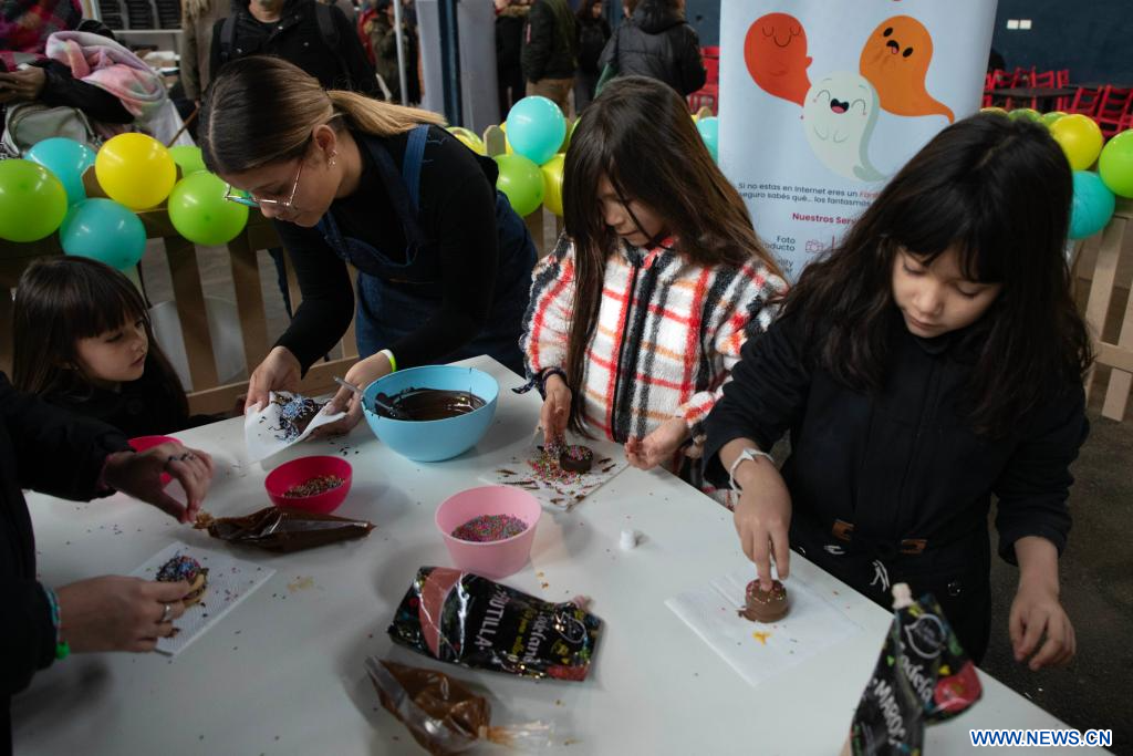 BUENOS AIRES, 19 agosto, 2023 (Xinhua) -- Niñas juegan a crear sus propios alfajores durante la Feria Argentina del Alfajor en el marco de la segunda edición del Campeonato Mundial del Alfajor, en la ciudad de Buenos Aires, capital de Argentina, el 19 de agosto de 2023. (Xinhua/Martín Zabala)