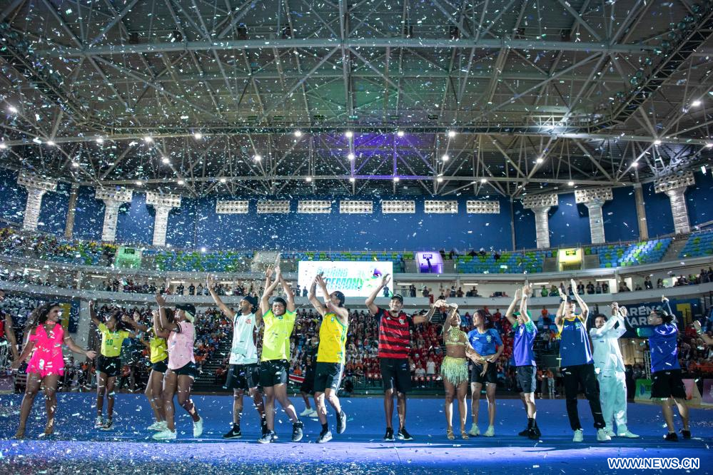 RIO DE JANEIRO, 21 agosto, 2023 (Xinhua) -- Imagen del 20 de agosto de 2023 de artistas realizando una presentación durante la ceremonia de apertura de la segunda Gimnasiada Sub-15 de la Federación Internacional de Deporte Escolar (ISF, por sus siglas en inglés), en Río de Janeiro, Brasil. (Xinhua/Wang Tiancong)
