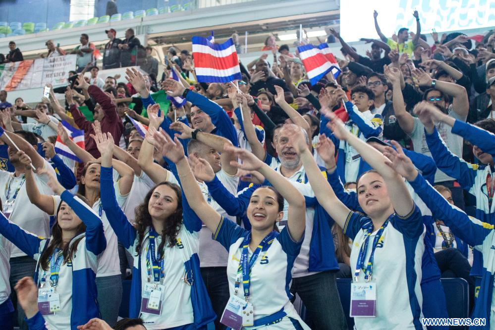 RIO DE JANEIRO, 21 agosto, 2023 (Xinhua) -- Imagen del 20 de agosto de 2023 de miembros de la delegación de Costa Rica animando durante la ceremonia de apertura de la segunda Gimnasiada Sub-15 de la Federación Internacional de Deporte Escolar (ISF, por sus siglas en inglés), en Río de Janeiro, Brasil. (Xinhua/Wang Tiancong)