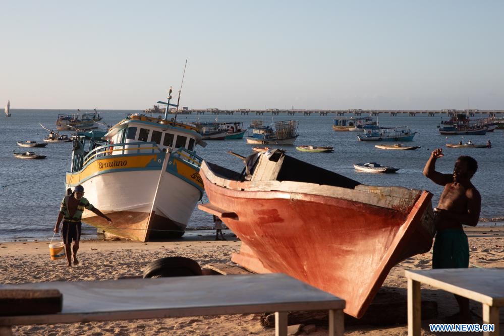 CEARA, 9 agosto, 2023 (Xinhua) -- Imagen del 8 de agosto de 2023 de pescadores organizando su pesca, en Fortaleza, Brasil. (Xinhua/Wang Tiancong)