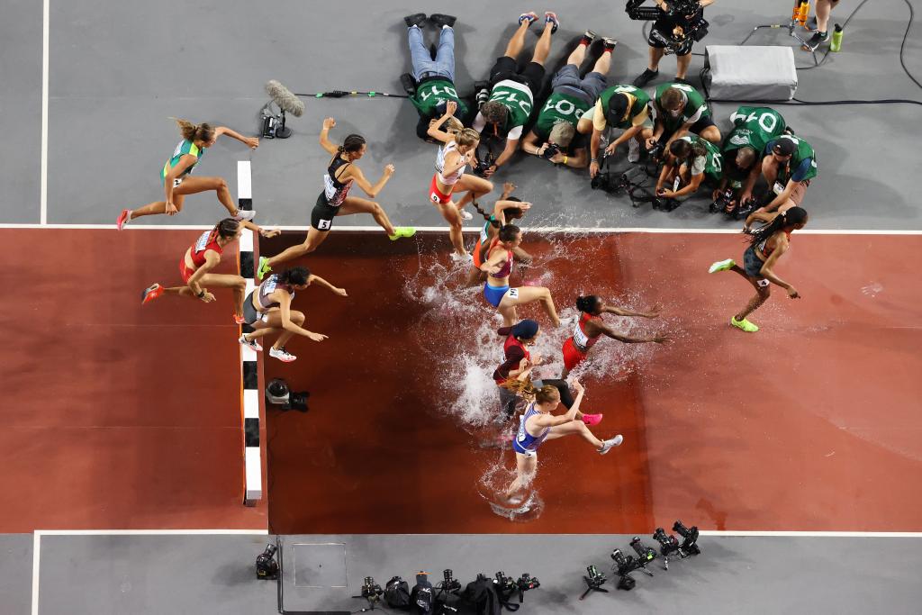 BUDAPEST, 24 agosto, 2023 (Xinhua) -- Imagen del 23 de agosto de 2023 de atletas compitiendo durante la carrera con obstáculos femenina de 3000m del Campeonato del Mundo de Atletismo de Budapest 2023, en Budapest, Hungría. (Xinhua/Zheng Huansong)