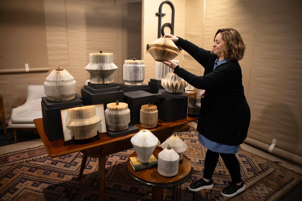 BUENOS AIRES, 24 agosto, 2023 (Xinhua) -- La artista argentina, Flor Dwek, manipula una de sus obras en su estand durante la 11ª edición de la Feria Buenos Aires Directo de Artista, en la ciudad de Buenos Aires, capital de la Argentina, el 24 de agosto de 2023. (Xinhua/Martín Zabala)