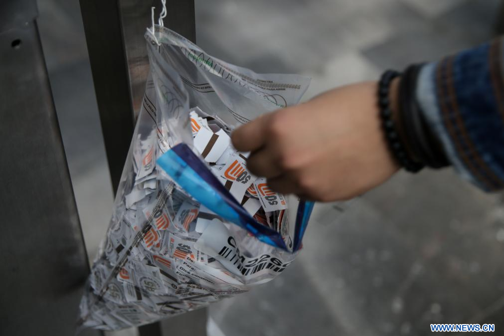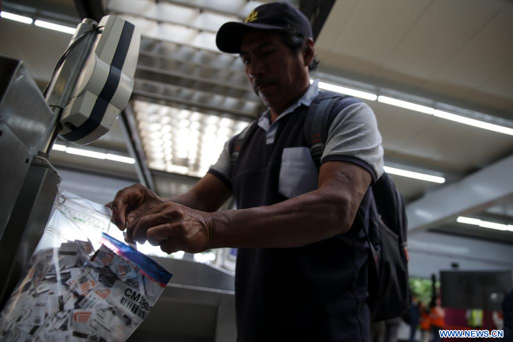 CIUDAD DE MEXICO, 23 agosto, 2023 (Xinhua) -- Imagen del 22 de agosto de 2023 de un hombre depositando un boleto en una bolsa para ingresar al Sistema de Transporte Colectivo Metro durante la presentación de la "Modernización del sistema de peaje en el Metro", en la Ciudad de México, capital de México. En la presentación se enunció que a partir de septiembre los usuarios de las Líneas 4 y 6 del Sistema de Transporte Colectivo Metro solo podrán ingresar usando una Tarjeta de Movilidad Integrada. (Xinhua/Francisco Cañedo)