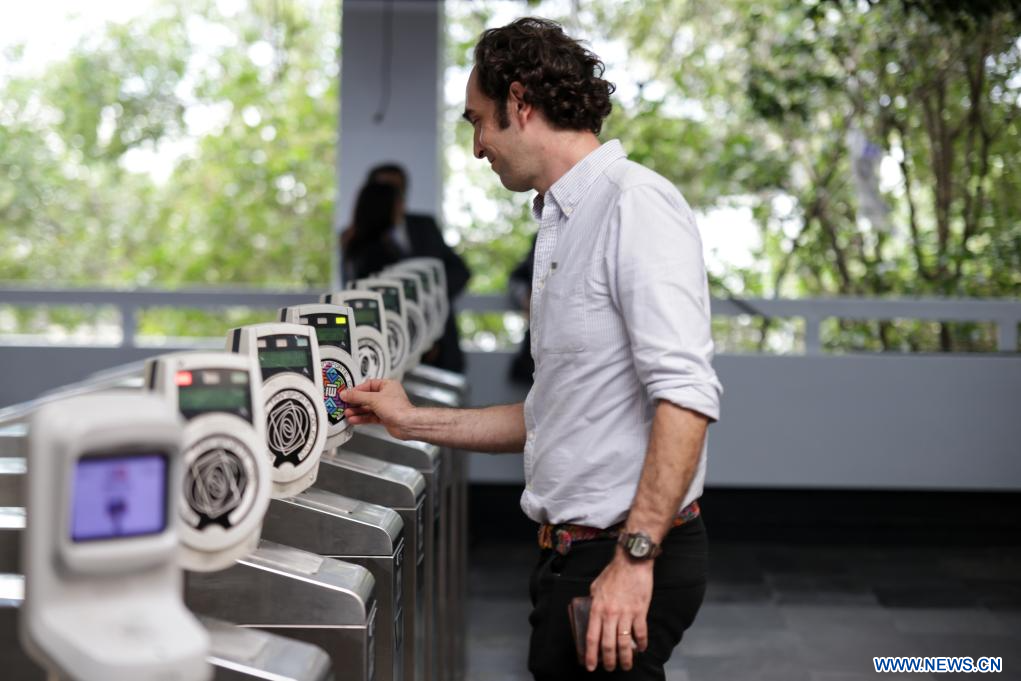CIUDAD DE MEXICO, 23 agosto, 2023 (Xinhua) -- Imagen del 22 de agosto de 2023 del secretario de Movilidad de la Ciudad de México, Andrés Lajous Loaeza, usando una Tarjeta de Movilidad Integrada para ingresar al Sistema de Transporte Colectivo Metro durante la presentación de la "Modernización del sistema de peaje en el Metro", en la Ciudad de México, capital de México. En la presentación se enunció que a partir de septiembre los usuarios de las Líneas 4 y 6 del Sistema de Transporte Colectivo Metro solo podrán ingresar usando una Tarjeta de Movilidad Integrada. (Xinhua/Francisco Cañedo)