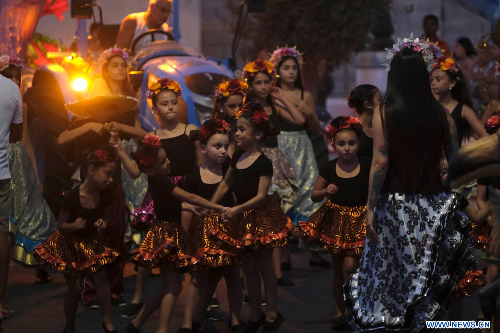 BIRZEBBUGA, 20 agosto, 2023 (Xinhua) -- Imagen del 19 de agosto de 2023 de niños disfrazados participando en el Carnaval de Verano, en Birzebbuga, Malta. Desfile de carrozas, exposiciones de arte y concursos de baile se realizaron durante el carnaval. (Xinhua/Jonathan Borg)