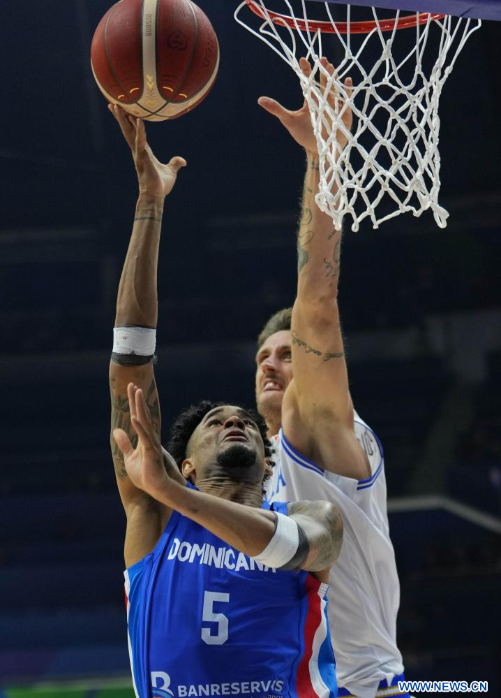 MANILA, 27 agosto, 2023 (Xinhua) -- Víctor Liz (i), de República Dominicana, brinca para encestar durante el partido del Grupo A entre República Dominicana e Italia en la Copa Mundial de la FIBA 2023, en Manila, Filipinas, el 27 de agosto de 2023. (Xinhua/Meng Yongmin)