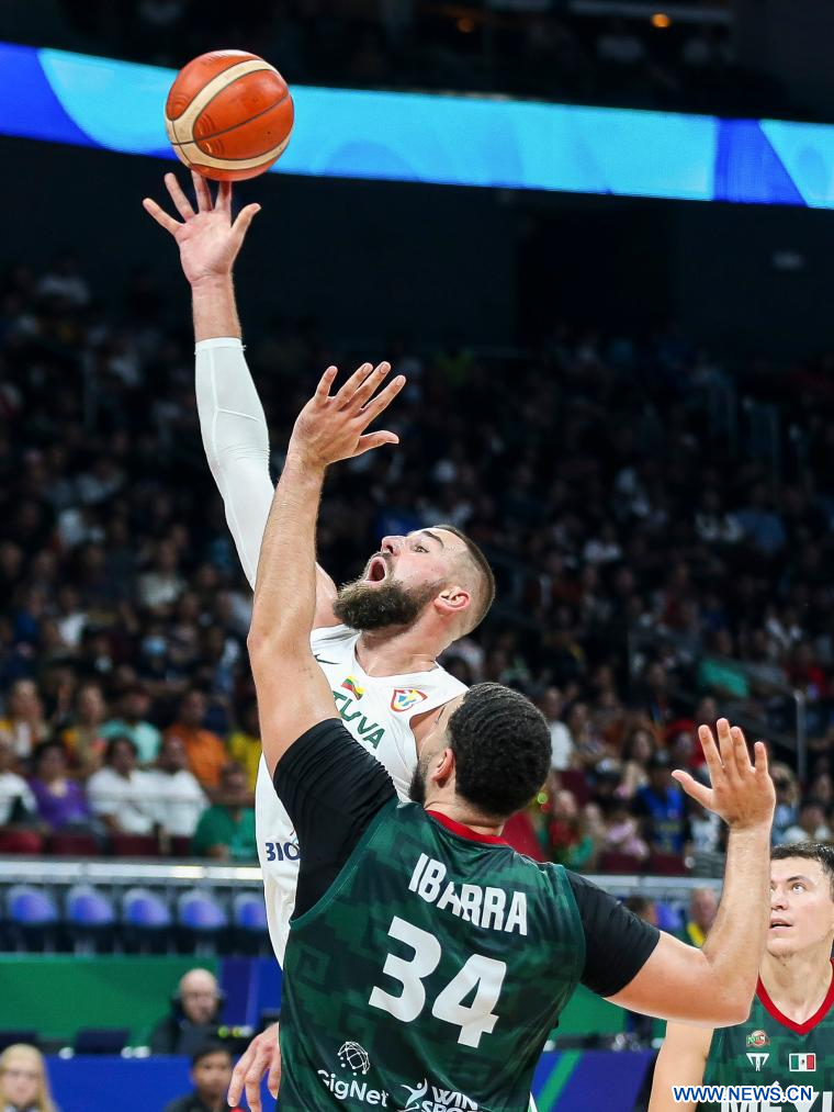 MANILA, 27 agosto, 2023 (Xinhua) -- Jonas Valanciunas (arriba), de Lituania, compite durante el partido del Grupo D entre México y Lituania en la Copa Mundial de la FIBA 2023, en Manila, Filipinas, el 27 de agosto de 2023. (Xinhua/Rouelle Umali)