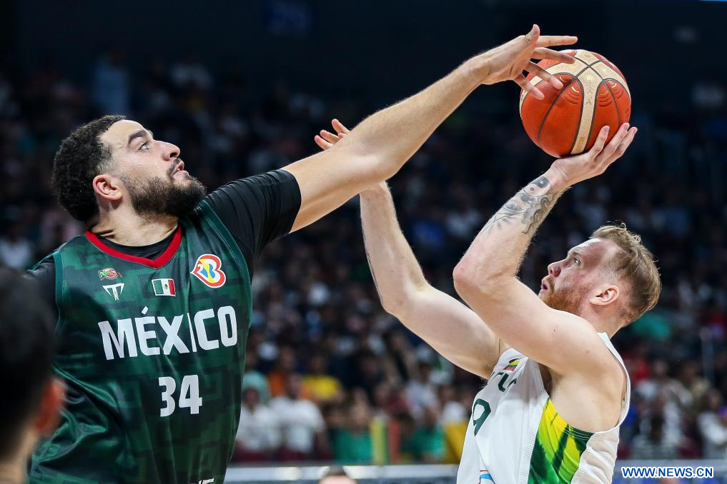 MANILA, 27 agosto, 2023 (Xinhua) -- Joshua Ibarra (i), de México, disputa el balón con Ignas Brazdeikis, de Lituania, durante el partido del Grupo D entre México y Lituania en la Copa Mundial de la FIBA 2023, en Manila, Filipinas, el 27 de agosto de 2023. (Xinhua/Rouelle Umali)