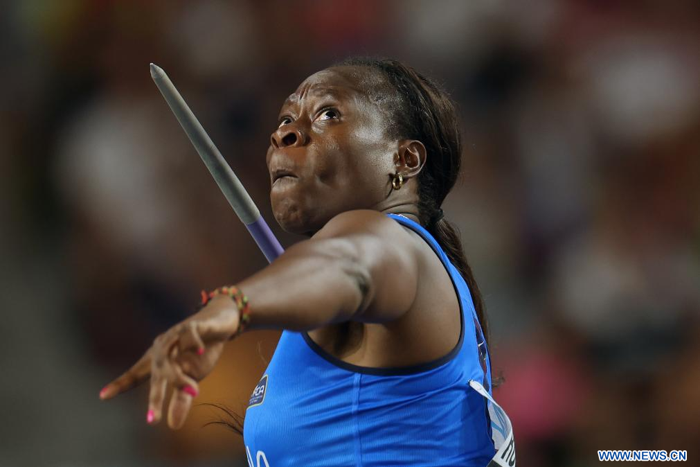 BUDAPEST, 26 agosto, 2023 (Xinhua) -- Imagen del 25 de agosto de 2023 de Flor Denis Ruiz Hurtado, de Colombia, compitiendo durante la final femenina de lanzamiento de jabalina durante el Campeonato del Mundo de Atletismo de Budapest 2023, en Budapest, Hungría. (Xinhua/Li Ming)