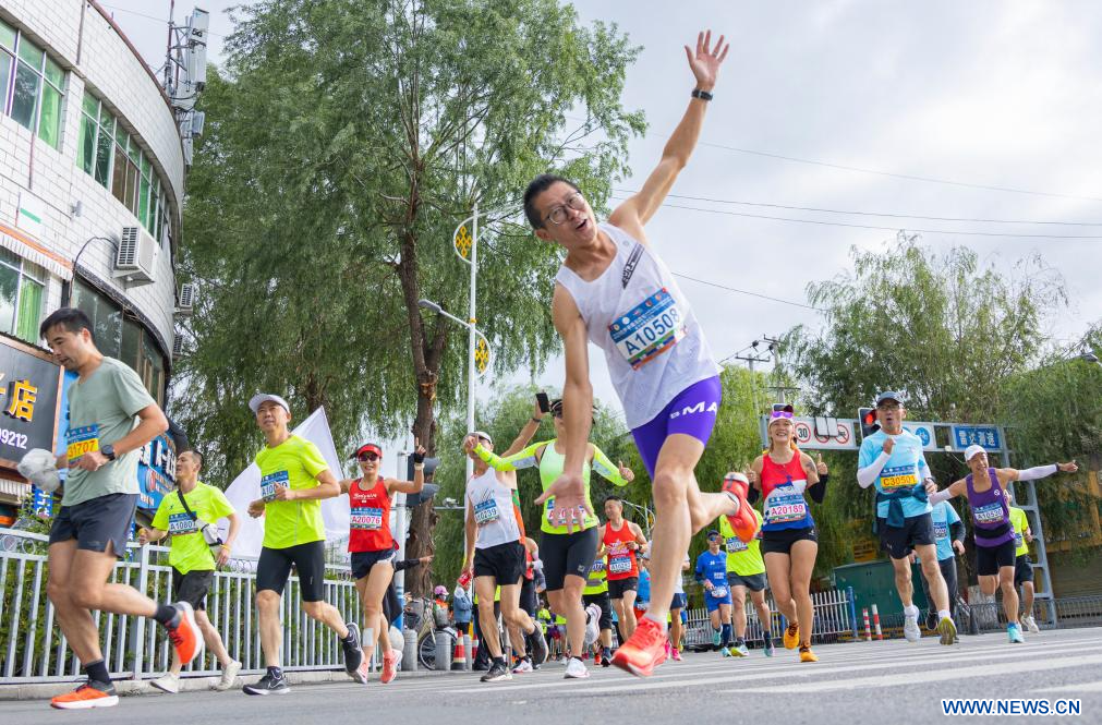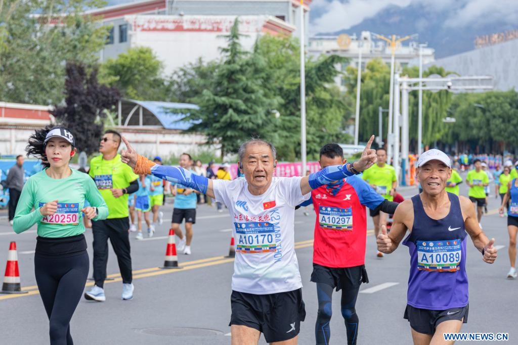 LHASA, 28 agosto, 2023 (Xinhua) -- Imagen del 27 de agosto de 2023 de corredores participando en la Media Maratón de Lhasa, en Lhasa, en la región autónoma del Tíbet, en el suroeste de China. (Xinhua/Tenzin Nyida)
