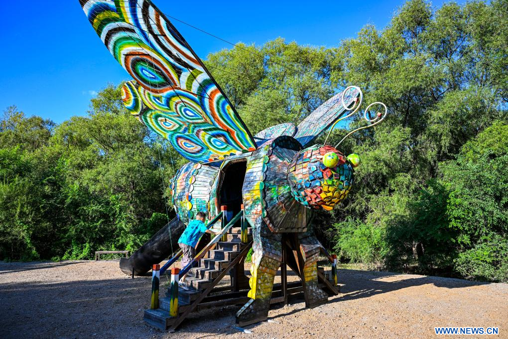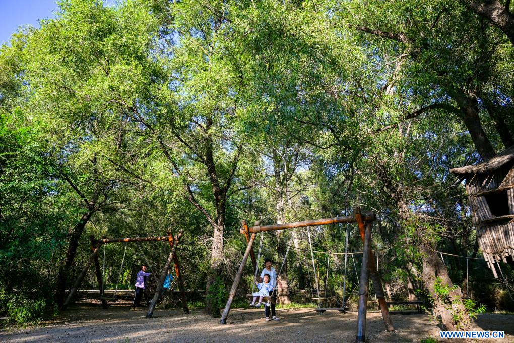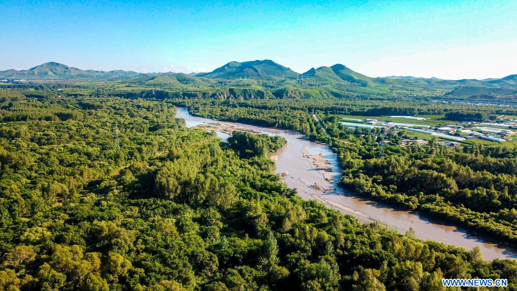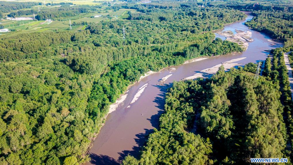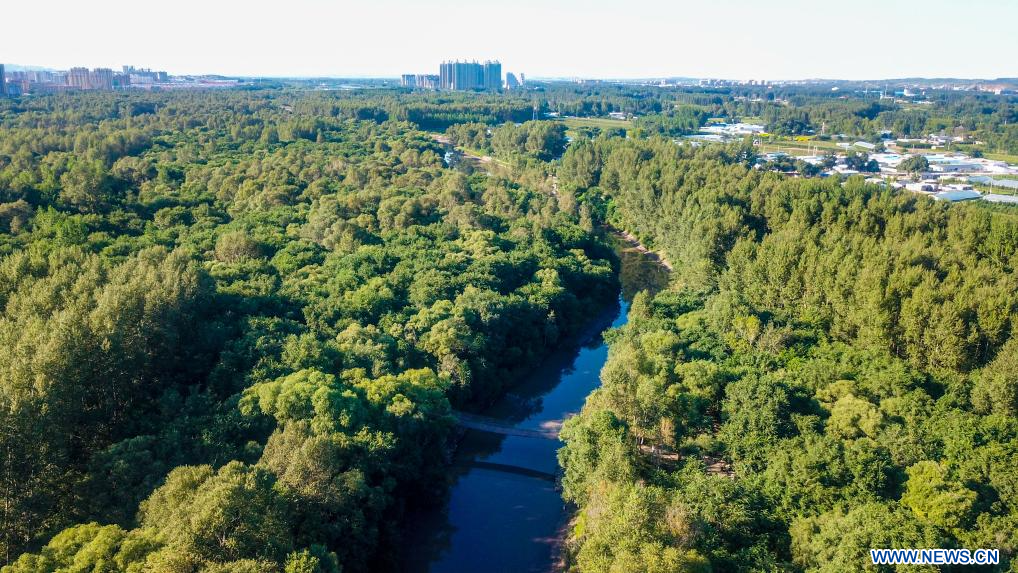 ULANHOT, 13 agosto, 2023 (Xinhua) -- Vista aérea del 13 de agosto de 2023 del Parque Nacional de Humedales Tao'erhe, en la ciudad de Ulanhot, en la región autónoma de Mongolia Interior, en el norte de China. (Xinhua/Peng Yuan)