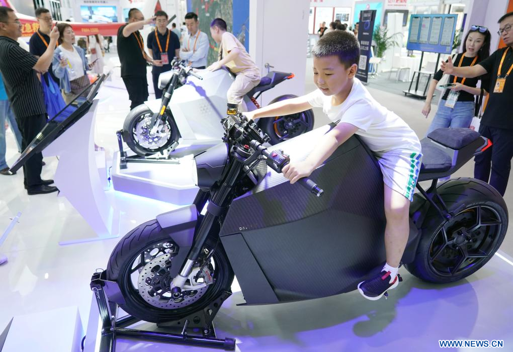 BEIJING, 3 septiembre, 2023 (Xinhua) -- Un niño prueba una motocicleta eléctrica durante la Feria Internacional de Comercio de Servicios de China 2023 (CIFTIS, por sus siglas en inglés) en el Parque Shougang, en Beijing, capital de China, el 3 de septiembre de 2023. Con el lema "La apertura conduce al desarrollo, la cooperación crea un futuro en el cual todos ganan", la CIFTIS 2023 se lleva a cabo en Beijing del 2 al 6 de septiembre y prevé organizar 202 eventos variados, entre ellos foros, negociaciones y cumbres. Durante el evento las tecnologías de vanguardia han atraído la atención de los visitantes. (Xinhua/Zhang Chenlin)