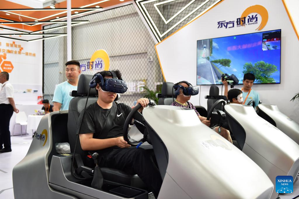 BEIJING, 5 septiembre, 2023 (Xinhua) -- Visitantes prueban los simuladores piloto de Realidad Virtual durante la Feria Internacional del Comercio de Servicios de China 2023 (CIFTIS, por sus siglas en inglés) en el parque de Shougang, en Beijing, capital de China, el 5 de septiembre de 2023. Con el lema "La apertura conduce al desarrollo, la cooperación crea un futuro", la CIFTIS 2023 se lleva a cabo en Beijing del 2 al 6 de septiembre. (Xinhua/Liu Lingyi)