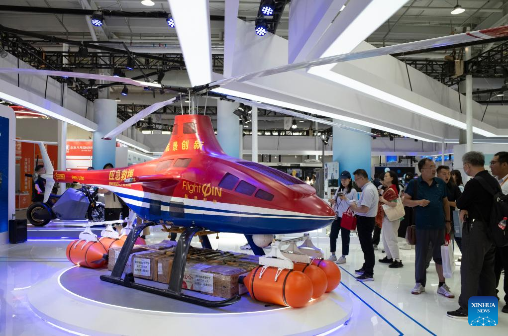 BEIJING, 5 septiembre, 2023 (Xinhua) -- Visitantes observan un helicóptero no tripulado durante la Feria Internacional del Comercio de Servicios de China 2023 (CIFTIS, por sus siglas en inglés) en el parque de Shougang, en Beijing, capital de China, el 5 de septiembre de 2023. Con el lema "La apertura conduce al desarrollo, la cooperación crea un futuro", la CIFTIS 2023 se lleva a cabo en Beijing del 2 al 6 de septiembre. (Xinhua/Hu Zhixuan)