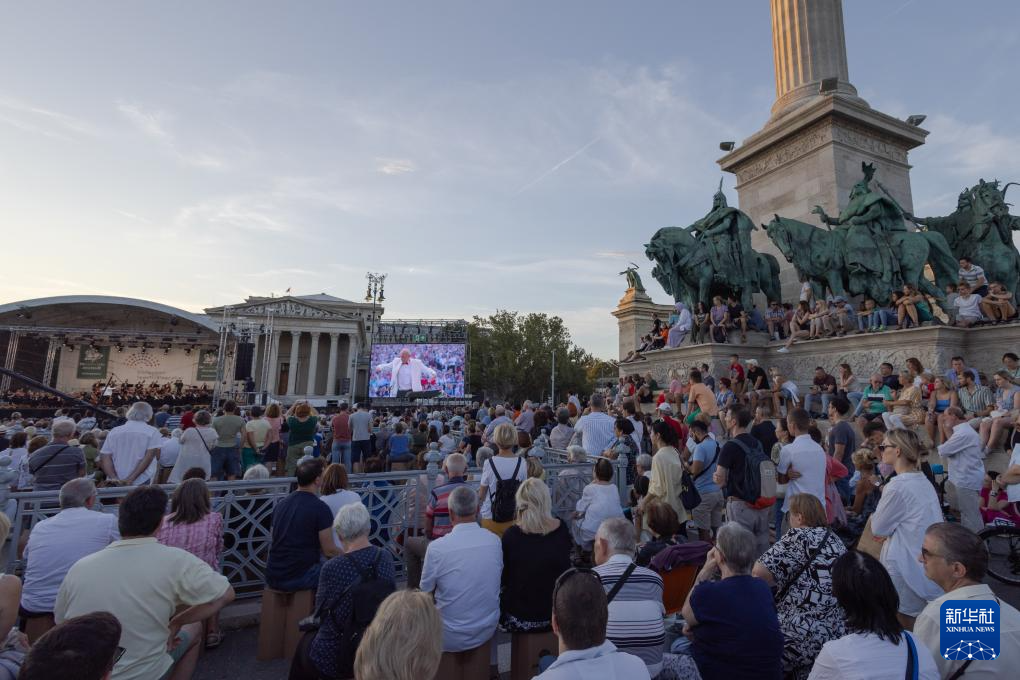 BUDAPEST, 3 septiembre, 2023 (Xinhua) -- Imagen del 2 de septiembre de 2023 de personas escuchando un concierto gratuito al aire libre de la Orquesta del Festival de Budapest, celebrando el 150º aniversario de la plaza de los Héroes de Budapest, en Budapest, Hungría. En 1873 Buda, Pest y Obuda fueron unificadas en una sola ciudad, nombrando a la ciudad Budapest. (Xinhua/Attila Volgyi)