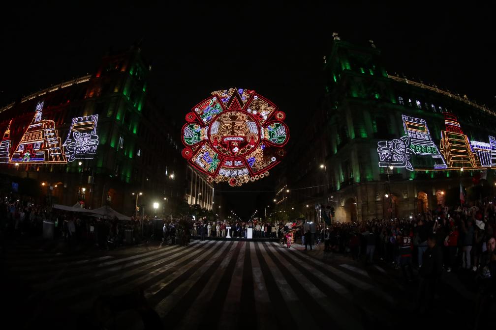CIUDAD DE MÉXICO, 5 septiembre, 2023 (Xinhua) -- Imagen del 4 de septiembre de 2023 del alumbrado decorativo colocado con motivo del 213º Aniversario de la Independencia de México, en el Zócalo de la Ciudad de México, capital de México. (Xinhua/Francisco Cañedo)