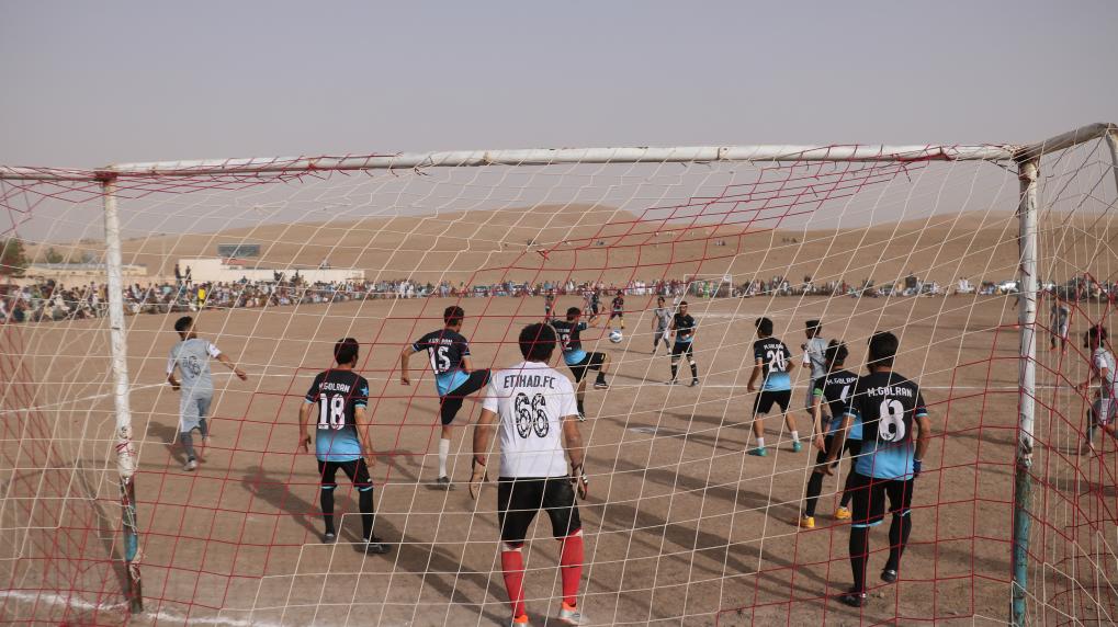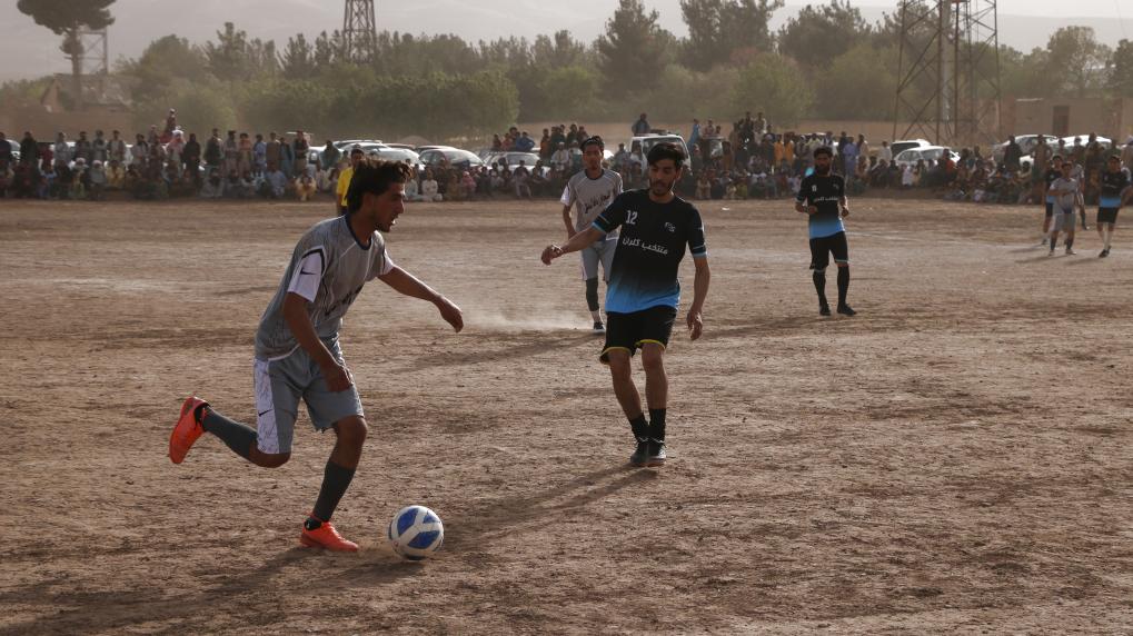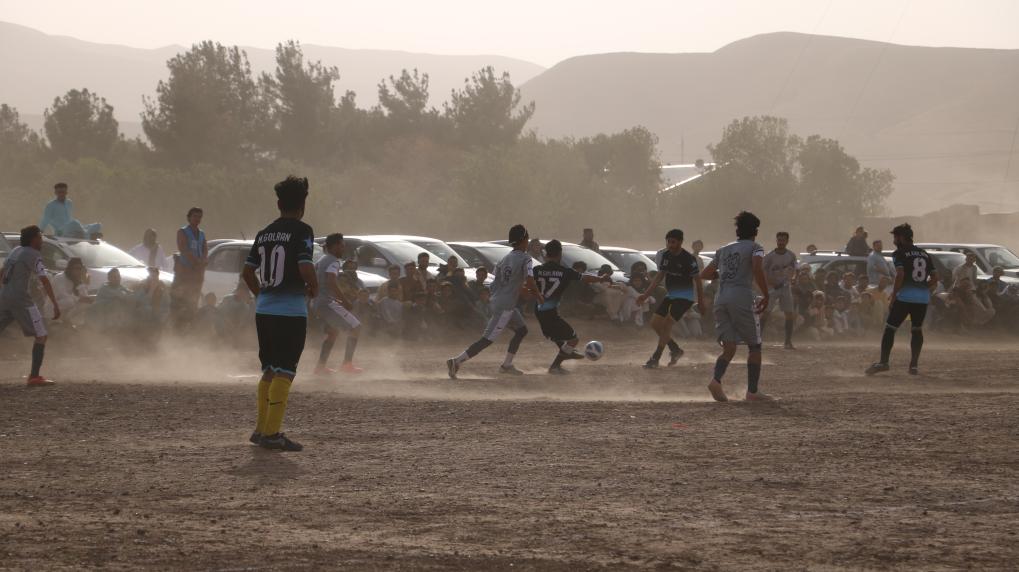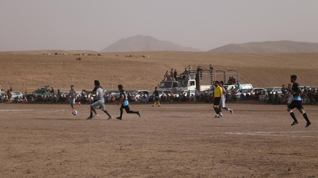 Afganistán: Jóvenes afganos juegan fútbol en un campo