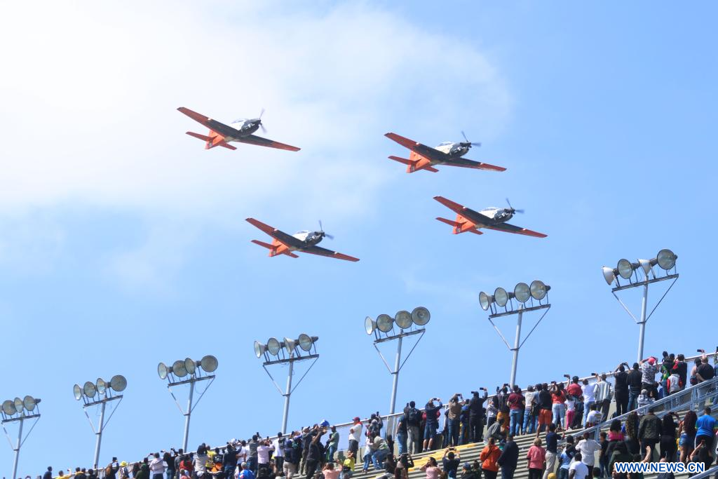 SAO PAULO, 7 septiembre, 2023 (Xinhua) -- Aviones militares participan en el desfile en conmemoración de la Independencia de Brasil, en Sao Paulo, Brasil, el 7 de septiembre de 2023. (Xinhua/Rahel Patrasso)