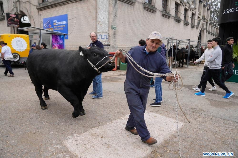 MONTEVIDEO, 11 septiembre, 2023 (Xinhua) -- Un hombre prepara a un toro para ser presentado ante un jurado durante la 118 Exposición Internacional de Ganadería Muestra Agroindustrial y Comercial "Expo Prado 2023", en el Predio de Exposiciones de la Rural del Prado, en Montevideo, capital de Uruguay, el 11 de septiembre de 2023. (Xinhua/Nicolás Celaya)