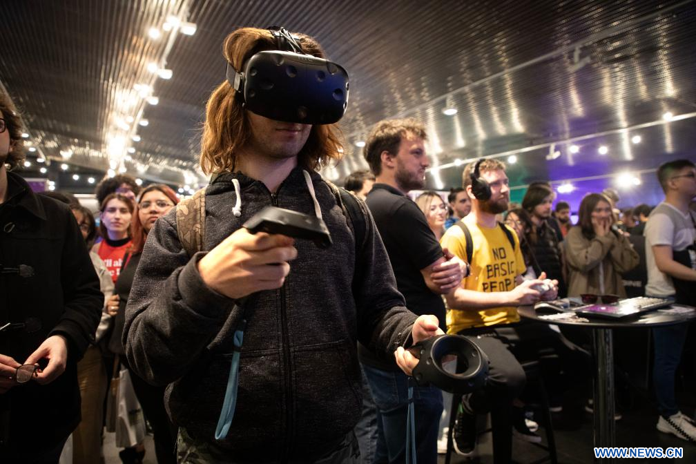 BUENOS AIRES, 15 septiembre, 2023 (Xinhua) -- Un asistente juega un videojuego de realidad virtual durante la 21 edición de la Exposición de Videojuegos Argentina 2023, en el Centro Cultural Kirchner, en la ciudad de Buenos Aires, capital de Argentina, el 15 de septiembre de 2023. (Xinhua/Martín Zabala)