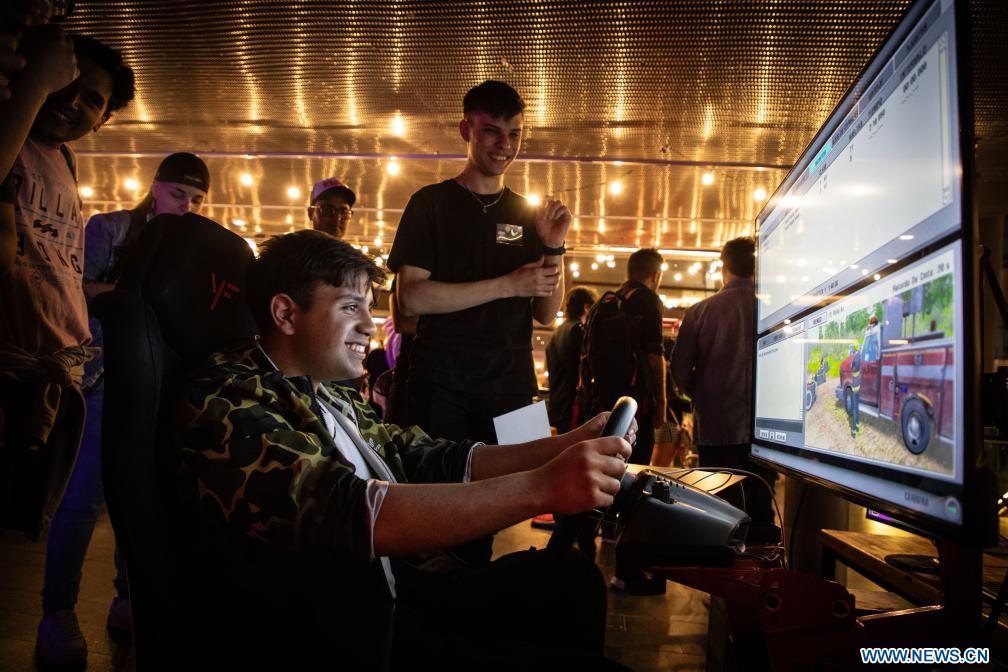BUENOS AIRES, 15 septiembre, 2023 (Xinhua) -- Un asistente juega un videojuego de simulador de manejo durante la 21 edición de la Exposición de Videojuegos Argentina 2023, en el Centro Cultural Kirchner, en la ciudad de Buenos Aires, capital de Argentina, el 15 de septiembre de 2023. (Xinhua/Martín Zabala)