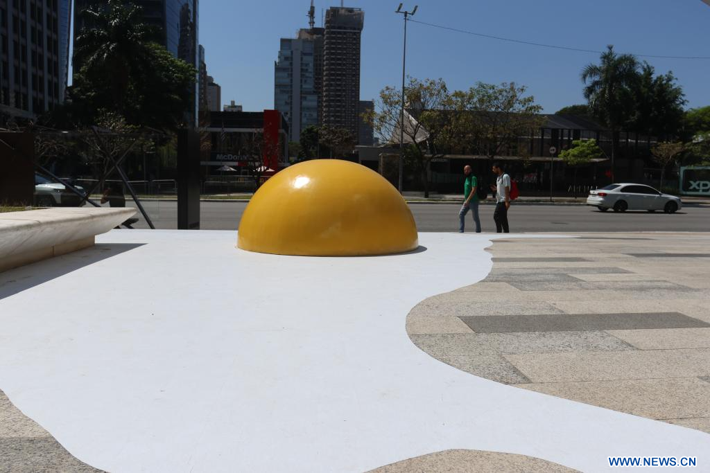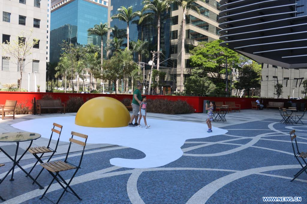 SAO PAULO, 16 septiembre, 2023 (Xinhua) -- Personas caminan frente a la instalación "Eggcident", del artista neerlandés Henk Hofstra, que tiene como objetivo reflexionar sobre el calentamiento global durante la 13 edición del festival "Virada Sustentável", en Sao Paulo, Brasil, el 16 de septiembre de 2023. (Xinhua/Rahel Patrasso)
