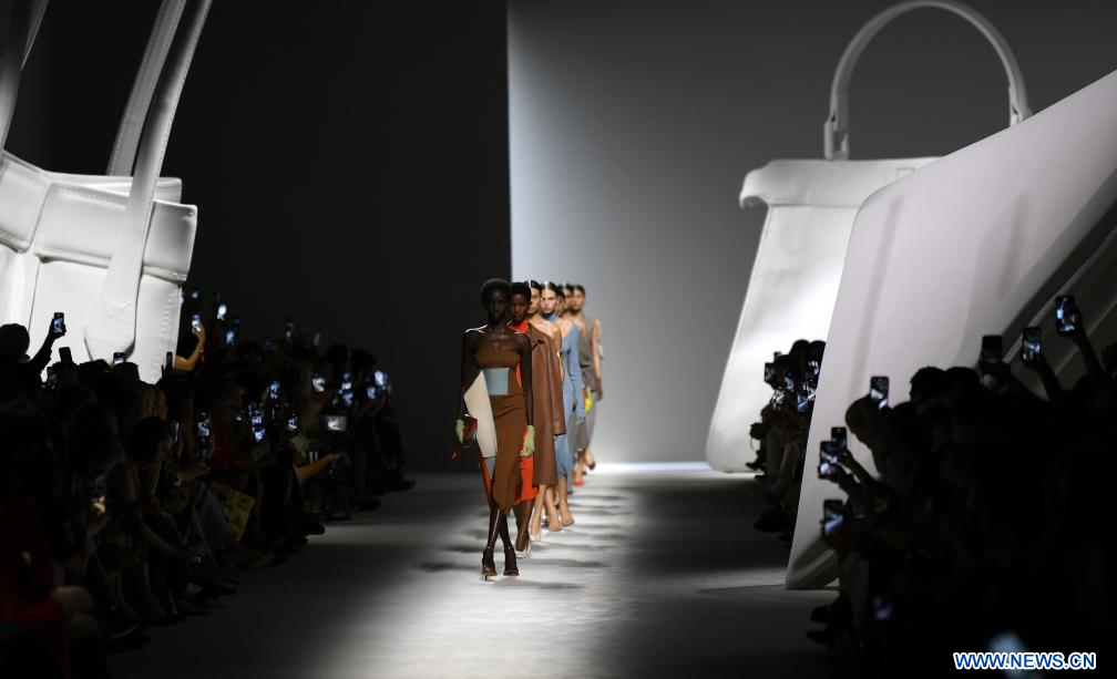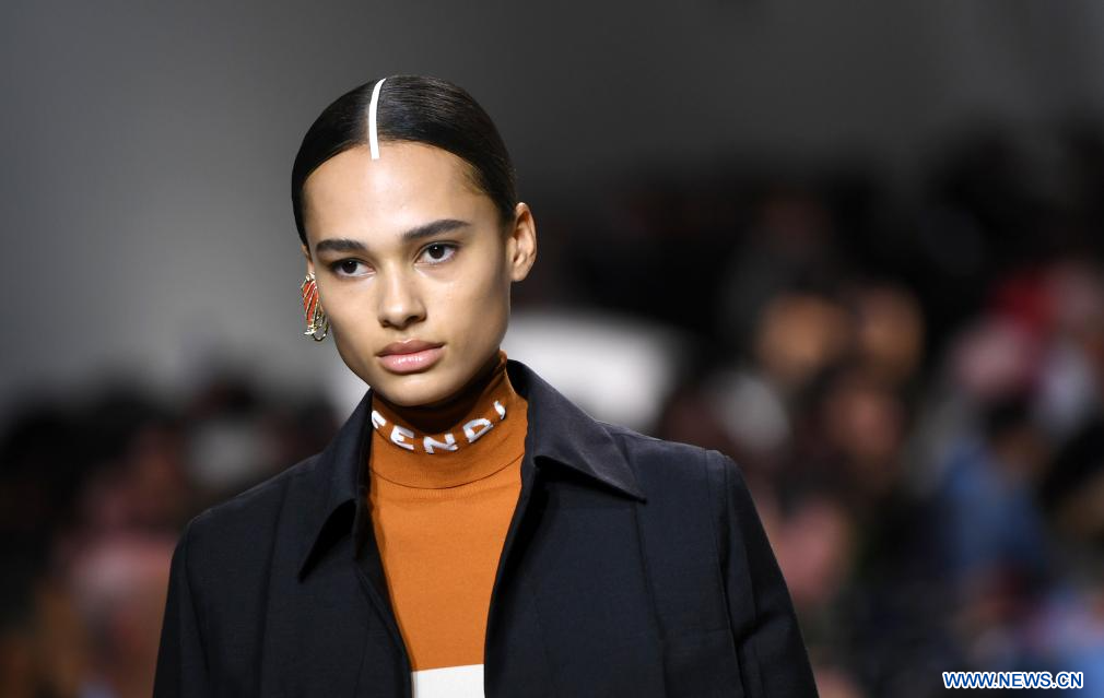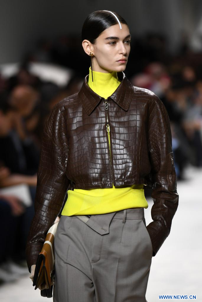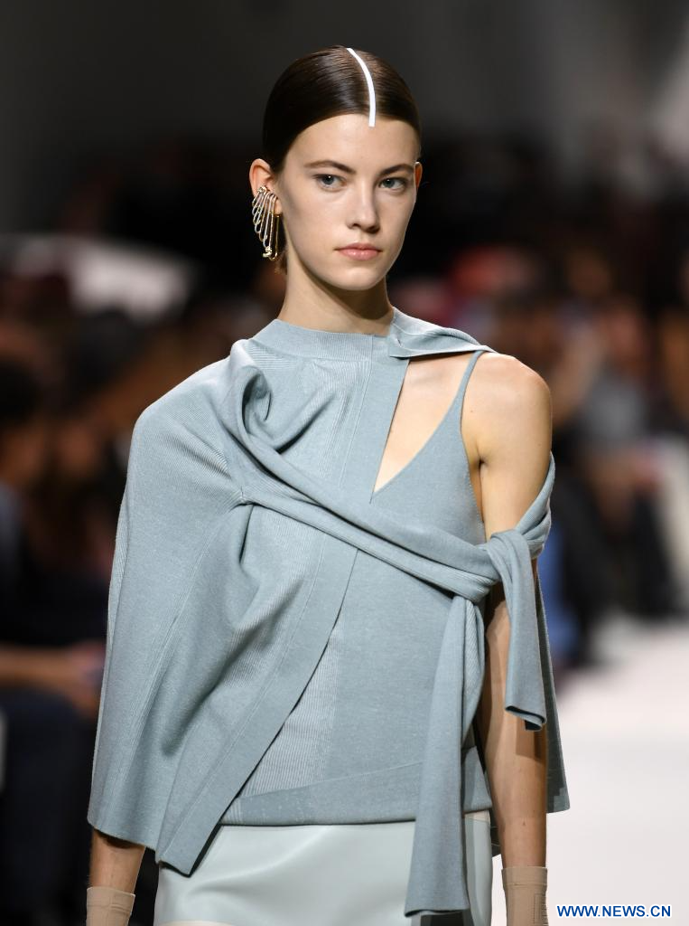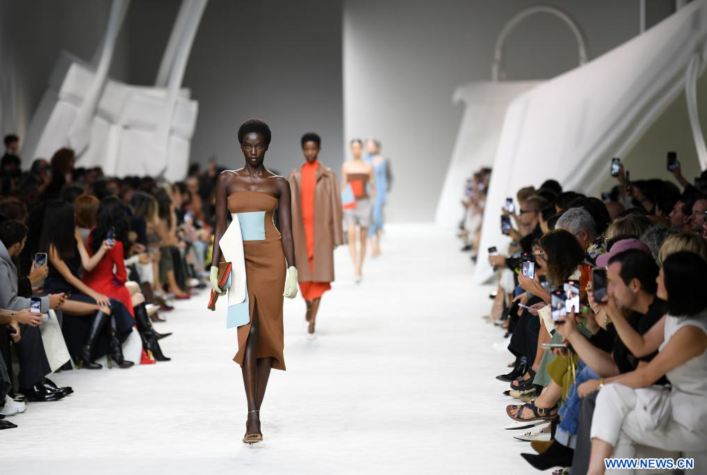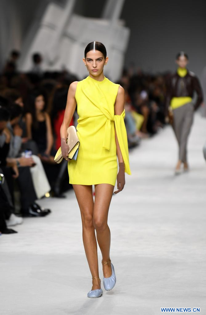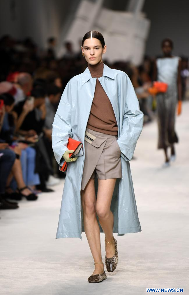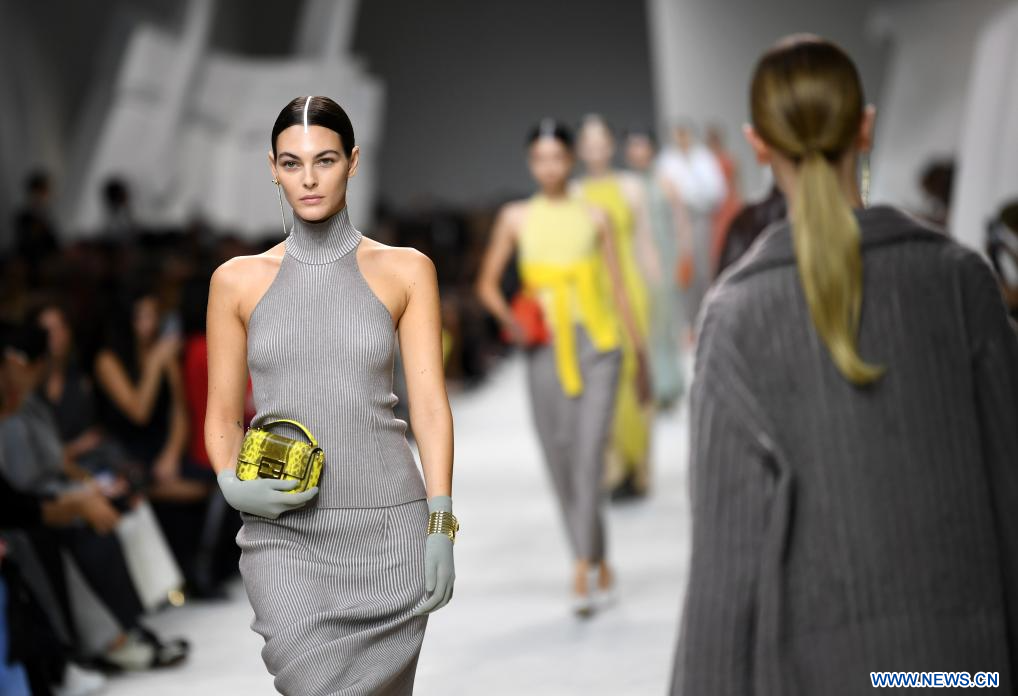 MILAN, 20 septiembre, 2023 (Xinhua) -- Una modelo presenta una creación para las colecciones femeninas Primavera/Verano 2024 de Fendi durante la Semana de la Moda de Milán, en Milán, Italia, el 20 de septiembre de 2023. (Xinhua/Jin Mamengni)