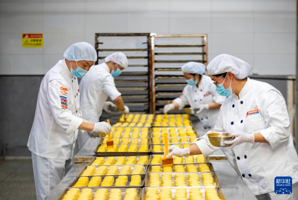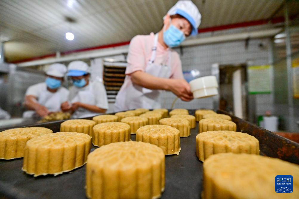 TAIZHOU, 13 septiembre, 2023 (Xinhua) -- Trabajadores preparan pasteles de luna en un taller, en la ciudad de Taizhou, provincia de Jiangsu, en el este de China, el 13 de septiembre de 2023. El Festival del Medio Otoño de este año se celebrará el 29 de septiembre. (Xinhua/Tang Dehong)