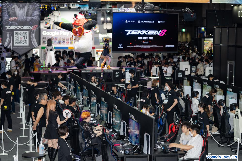 TOKIO, 21 septiembre, 2023 (Xinhua) -- Personas prueban juegos de Bandai Namco en el Tokyo Game Show 2023, en la prefectura de Chiba, Japón, el 21 de septiembre de 2023. El Tokyo Game Show 2023 de cuatro días de duración fue inaugurado en el Makuhari Messe en la prefectura japonesa de Chiba el jueves, atrayendo a 787 expositores de 44 países y regiones. (Xinhua/Zhang Xiaoyu)