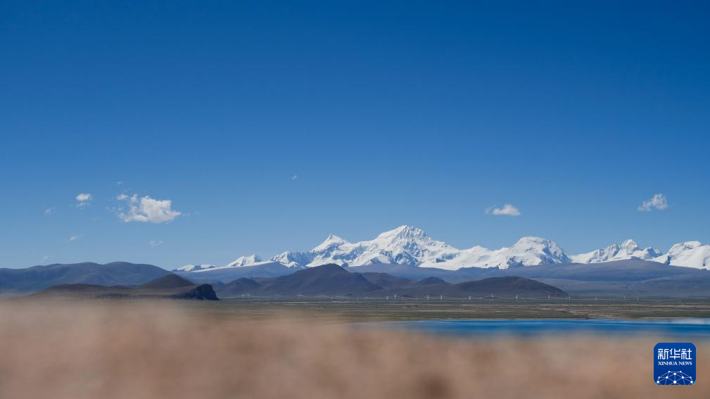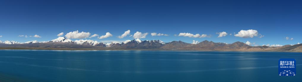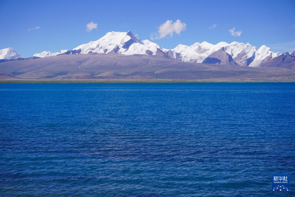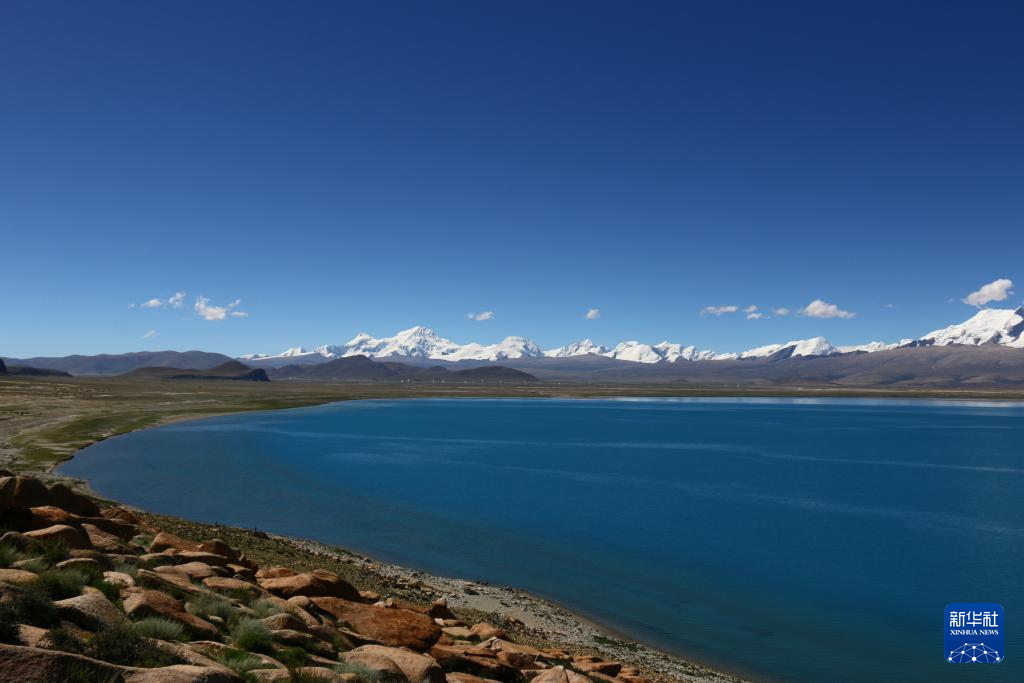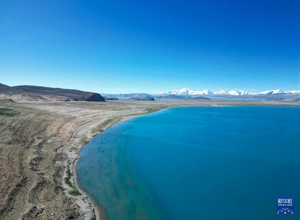 XIGAZE, 3 septiembre, 2023 (Xinhua) -- Imagen combinada del 2 de septiembre de 2023 del paisaje del lago Baiku y las montañas nevadas cercanas, en Xigaze, en la región autónoma del Tíbet, en el suroeste de China. (Xinhua/Nie Yi)