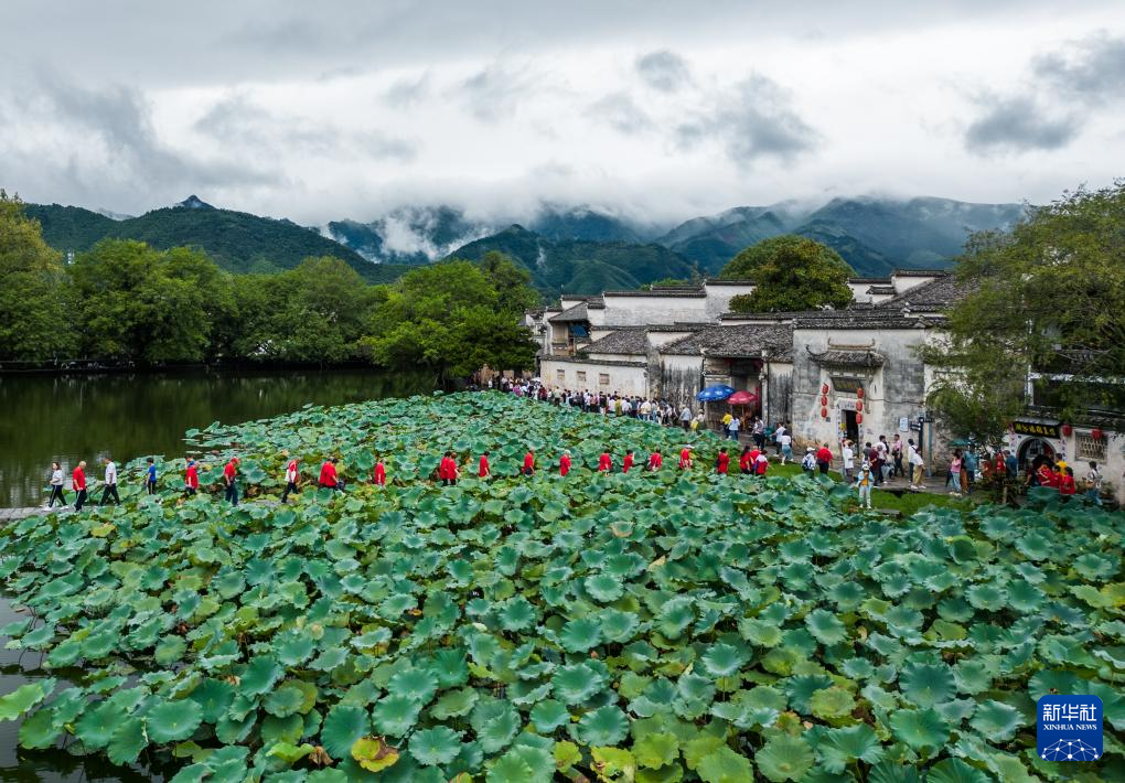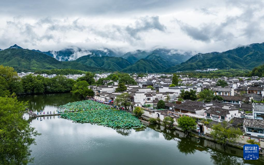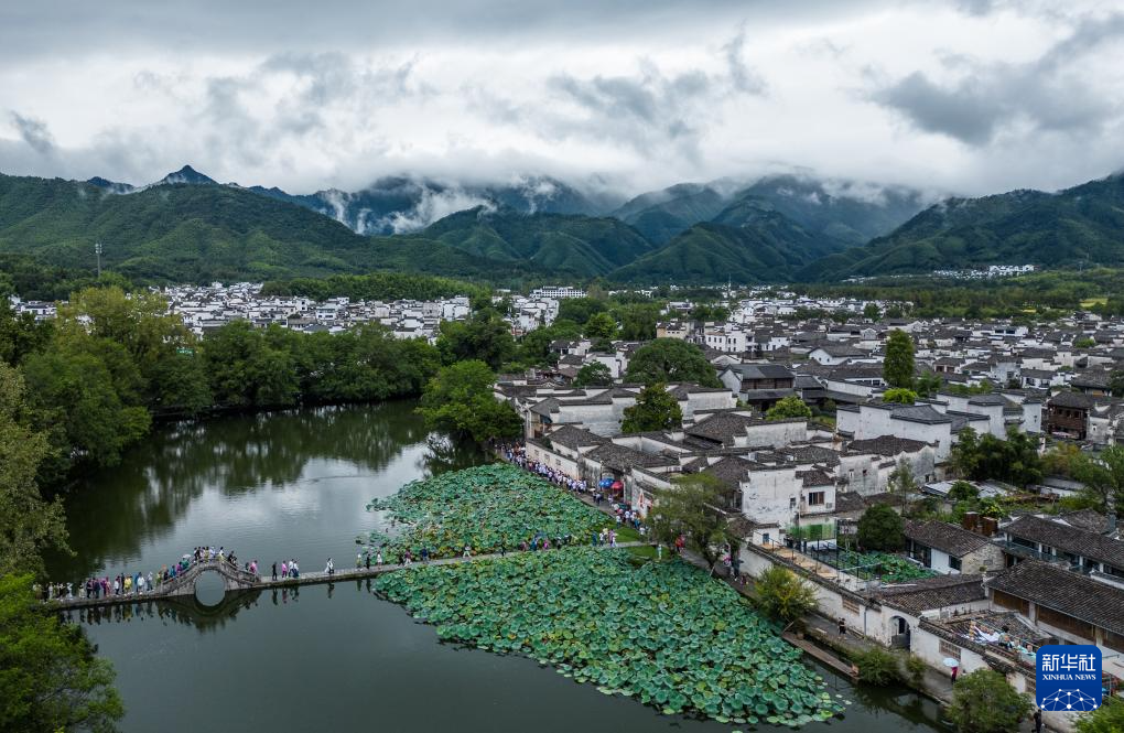 HUANGSHAN, 14 septiembre, 2023 (Xinhua) -- Vista aérea del 13 de septiembre de 2023 de la aldea de Hongcun, en el distrito de Yixian, en la ciudad de Huangshan de la provincia de Anhui, en el este de China. (Xinhua/Guo Chen)