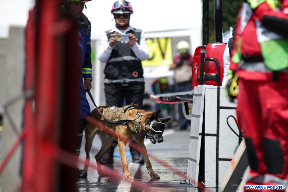 CIUDAD DE MEXICO, 20 septiembre, 2023 (Xinhua) -- Imagen del 19 de septiembre de 2023 de un perro de rescate participando en el Segundo Simulacro Nacional 2023, en la Ciudad de México, capital de México. (Xinhua/Francisco Cañedo)