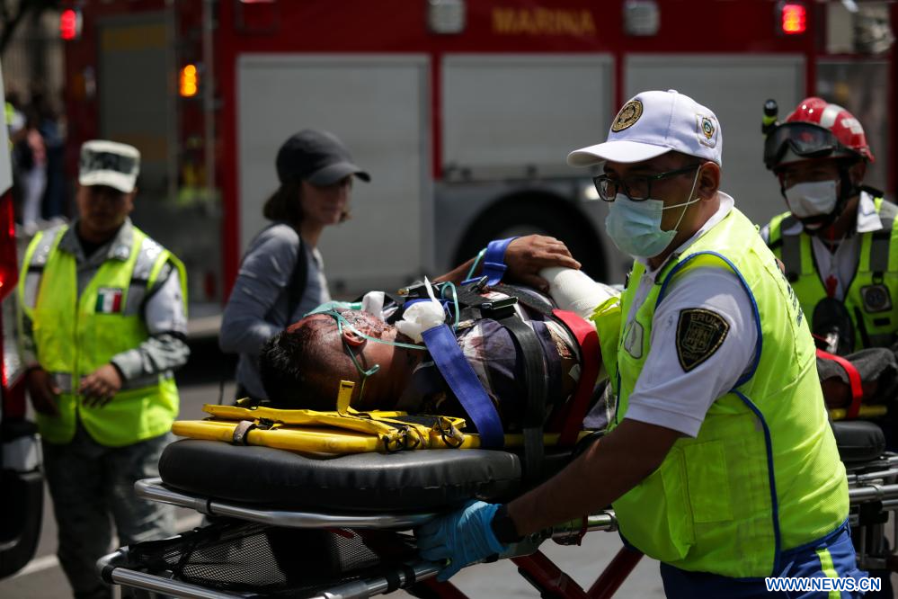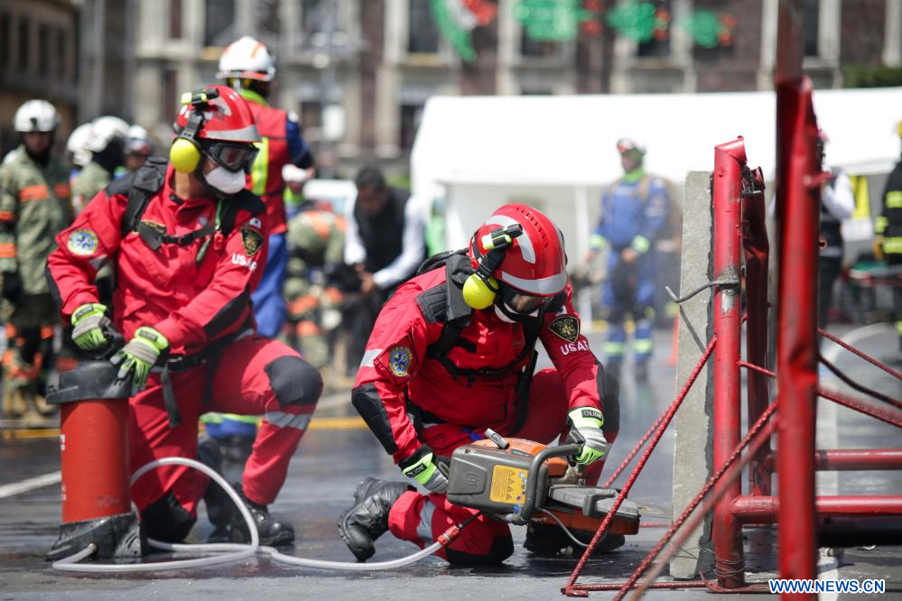 CIUDAD DE MEXICO, 20 septiembre, 2023 (Xinhua) -- Imagen del 19 de septiembre de 2023 de miembros del equipo de rescate de emergencia participando en el Segundo Simulacro Nacional 2023, en la Ciudad de México, capital de México. (Xinhua/Francisco Cañedo)