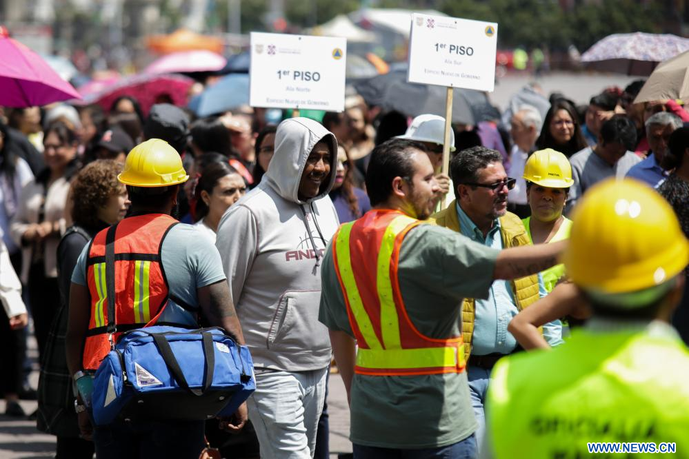 CIUDAD DE MEXICO, 20 septiembre, 2023 (Xinhua) -- Imagen del 19 de septiembre de 2023 de personas participando en el Segundo Simulacro Nacional 2023, en la Ciudad de México, capital de México. (Xinhua/Francisco Cañedo)