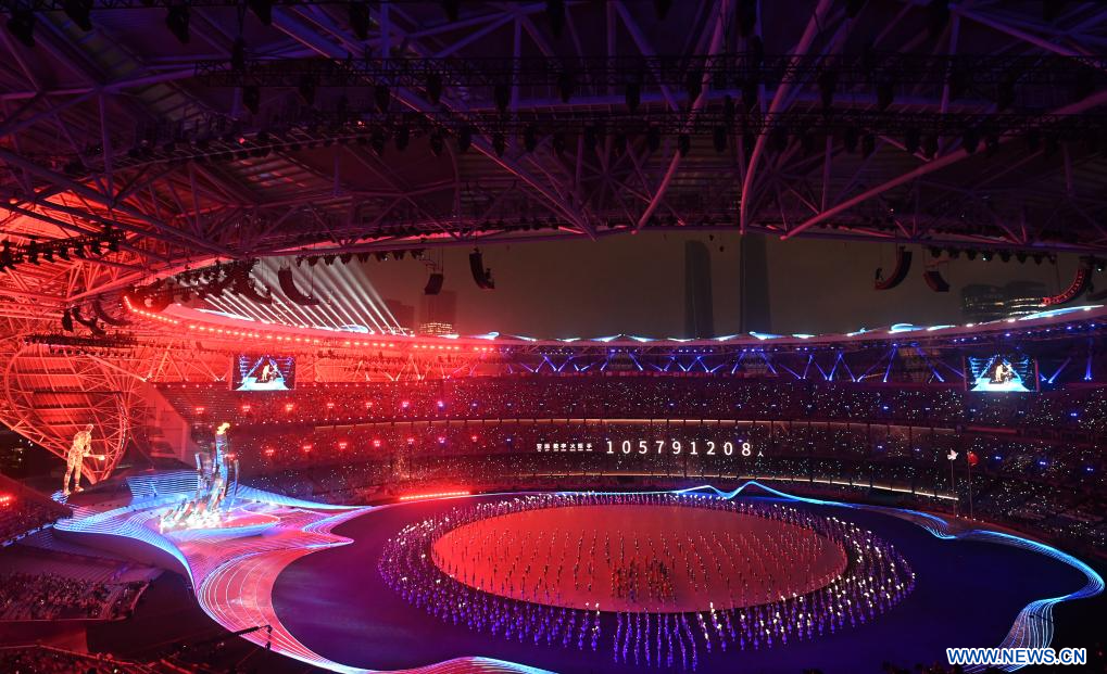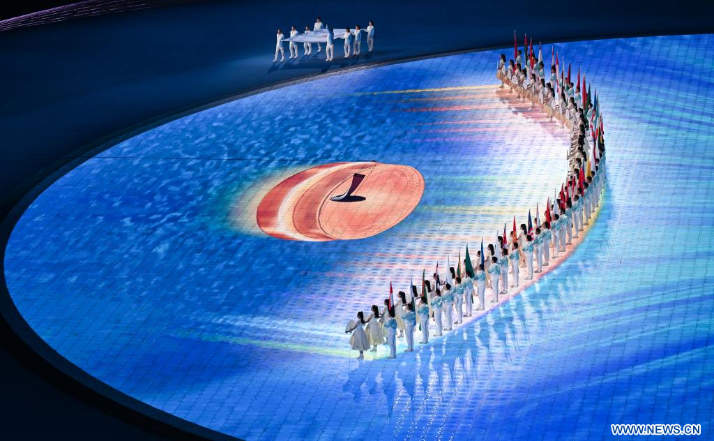HANGZHOU, 23 septiembre, 2023 (Xinhua) -- Vista de la ceremonia de inauguración de los XIX Juegos Asiáticos, en Hangzhou, provincia de Zhejiang, en el este de China, el 23 de septiembre de 2023. (Xinhua/Huang Zongzhi)