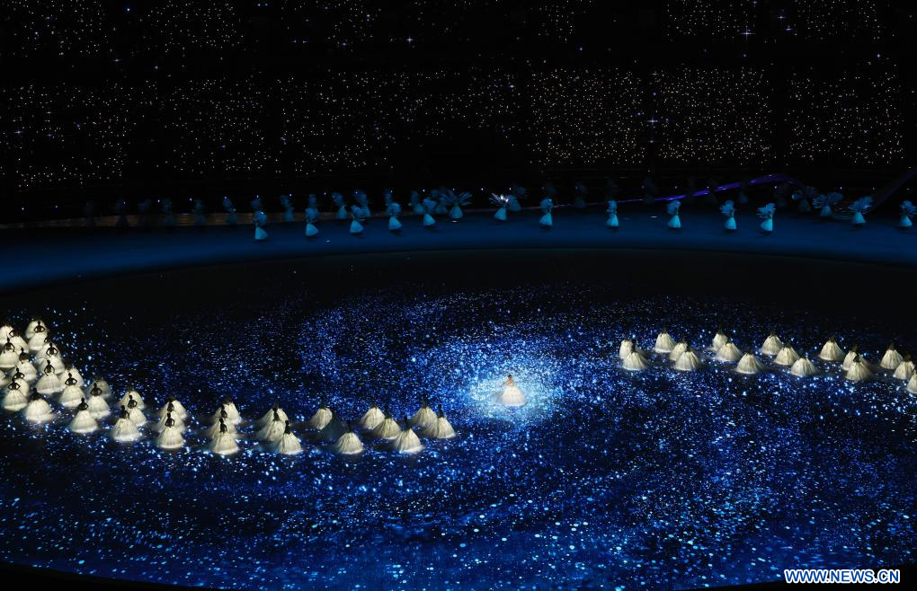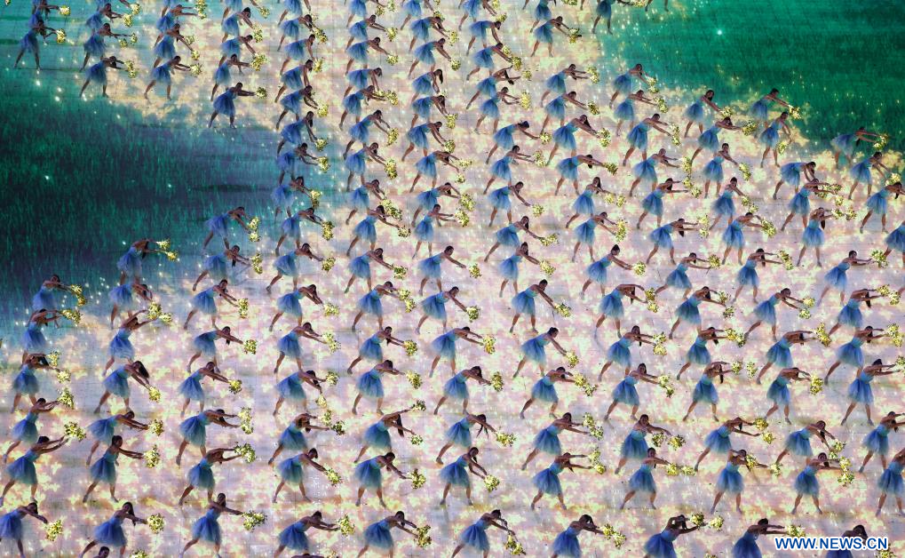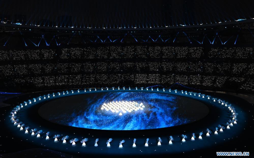 HANGZHOU, 23 septiembre, 2023 (Xinhua) -- Artistas realizan una presentación durante la ceremonia de inauguración de los XIX Juegos Asiáticos, en Hangzhou, en la provincia de Zhejiang, en el este de China, el 23 de septiembre de 2023. (Xinhua/Yang Lei)