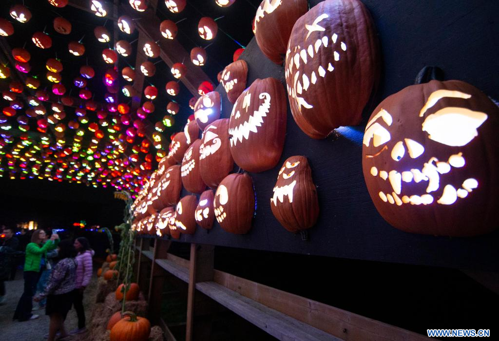 MILTON, 24 septiembre, 2023 (Xinhua) -- Imagen del 23 de septiembre de 2023 de personas visitando el evento Calabazas Después del Anochecer 2023, en Milton, Ontario, Canadá. Con más de 10.000 calabazas talladas a mano, el evento anual de Halloween al aire libre de Canadá se celebra del 23 de septiembre al 31 de octubre. (Xinhua/Zou Zheng)