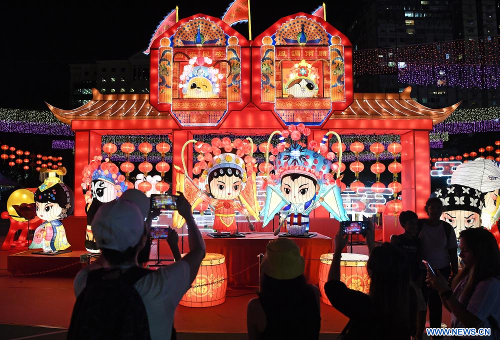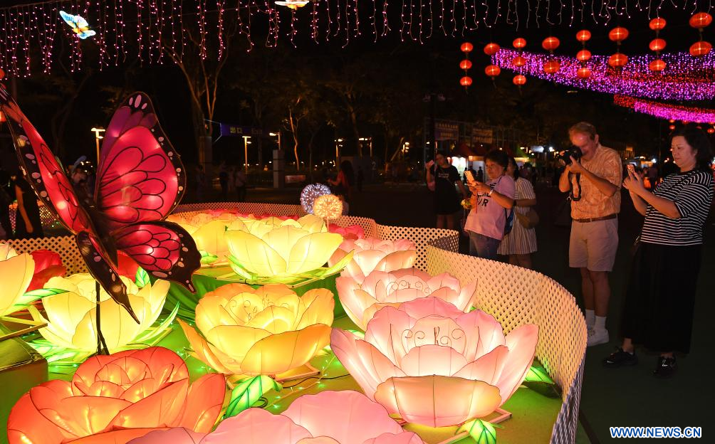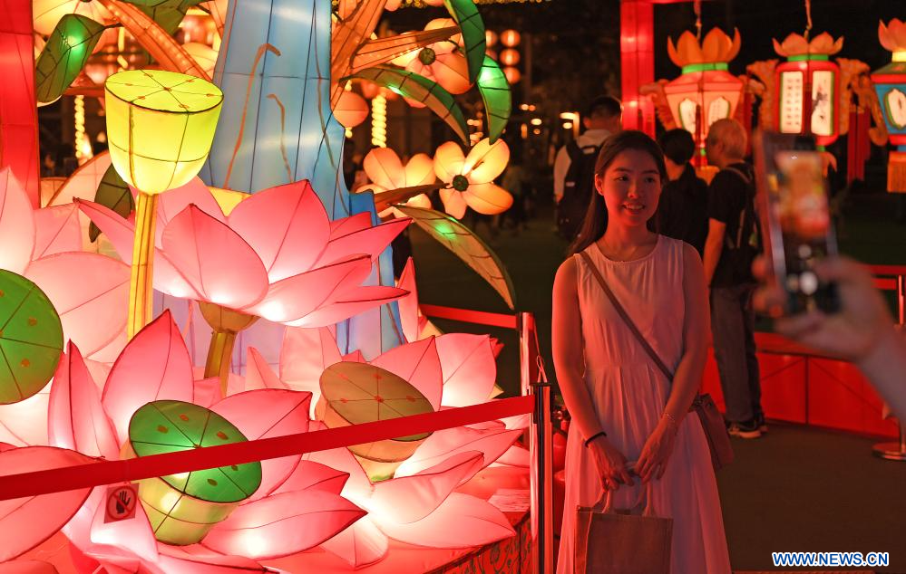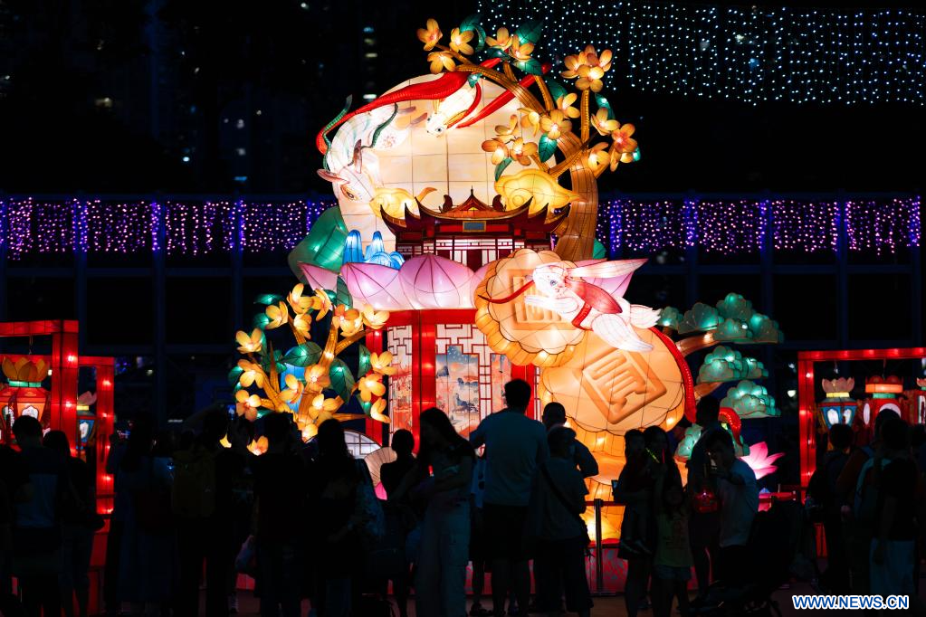 HONG KONG, 24 septiembre, 2023 (Xinhua) -- Imagen del 23 de septiembre de 2023 de personas visitando una feria de linternas de Medio Otoño en el Parque Victoria, en Hong Kong, en el sur de China. (Xinhua/Chen Duo)