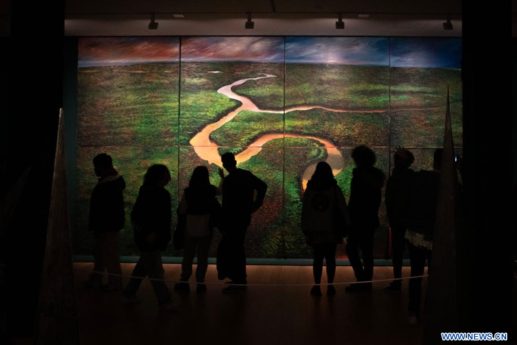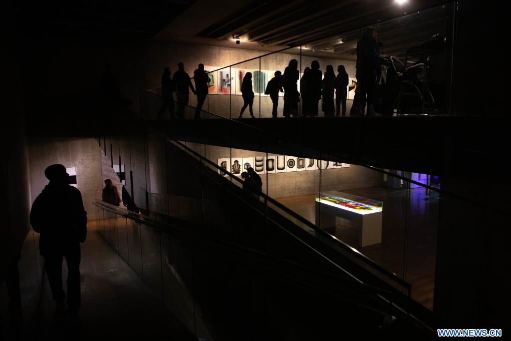 BUENOS AIRES, 24 septiembre, 2023 (Xinhua) -- Imagen del 23 de septiembre de 2023 de un hombre observando las obras exhibidas en el Museo de Arte Contemporáneo de Buenos Aires durante "La Noche de los Museos", en Buenos Aires, Argentina. Miles de vecinos y turistas vibraron en la ciudad argentina de Buenos Aires con una nueva edición de La Noche de los Museos, actividad que permitió celebrar la cultura con más de 290 establecimientos y propuestas artísticas que se extendieron desde la noche del sábado hasta la madrugada del domingo. (Xinhua/Martín Zabala)