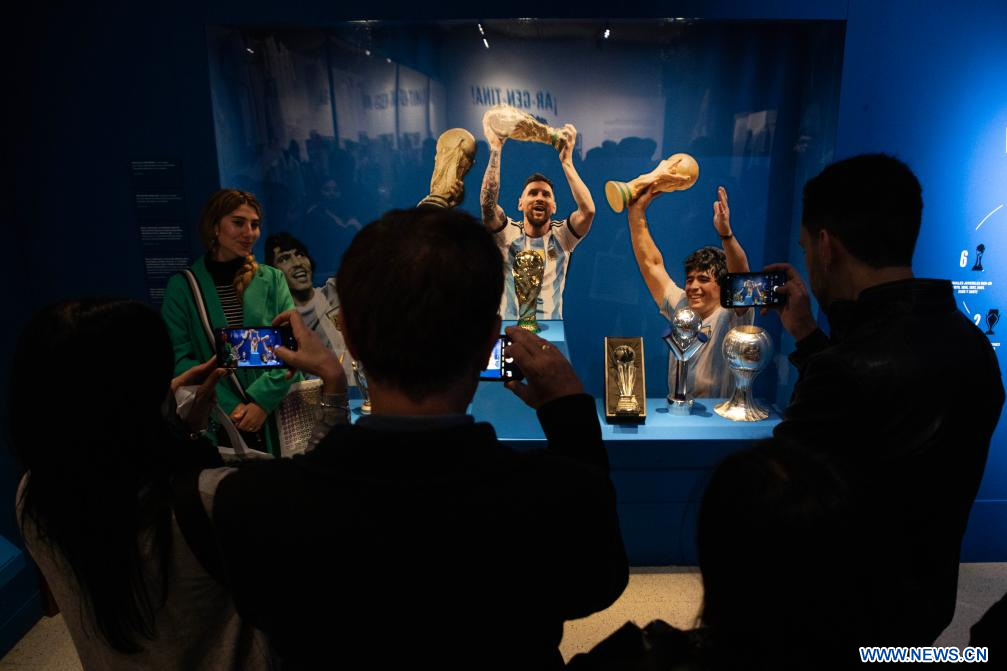 BUENOS AIRES, 24 septiembre, 2023 (Xinhua) -- Imagen del 23 de septiembre de 2023 de personas tomando fotografías a una réplica del trofeo de la Copa Mundial de la FIFA, en el Museo Histórico Nacional durante "La Noche de los Museos", en Buenos Aires, Argentina. Miles de vecinos y turistas vibraron en la ciudad argentina de Buenos Aires con una nueva edición de La Noche de los Museos, actividad que permitió celebrar la cultura con más de 290 establecimientos y propuestas artísticas que se extendieron desde la noche del sábado hasta la madrugada del domingo. (Xinhua/Martín Zabala)