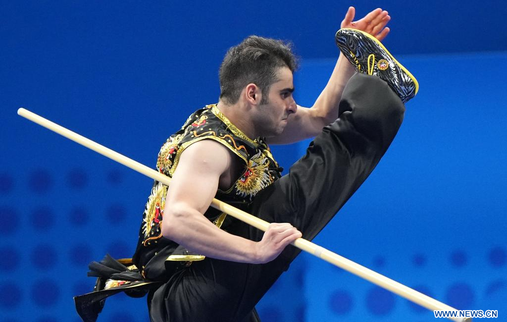 HANGZHOU, 26 septiembre, 2023 (Xinhua) -- Mohammad Ali Mojiri Foroushani, de Irán, compite durante las categorías Nanquan y Nangun masculino del All-round de Wushu en los XIX Juegos Asiáticos, en Hangzhou, en la provincia de Zhejiang, en el este de China, el 26 de septiembre de 2023. (Xinhua/Li Yibo)