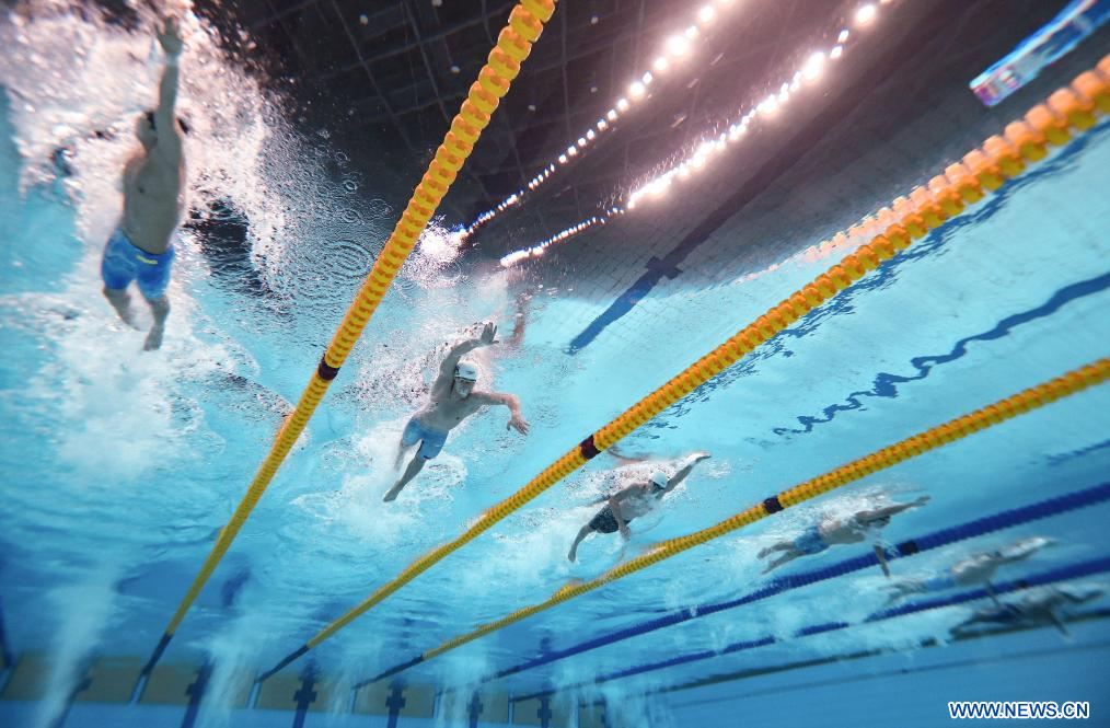 HANGZHOU, 26 septiembre, 2023 (Xinhua) -- Fei Liwei (2-i), de China, compite durante la prueba rápida masculina de 1500m estilo libre de natación en los XIX Juegos Asiáticos, en Hangzhou, en la provincia de Zhejiang, en el este de China, el 26 de septiembre de 2023. (Xinhua/Xia Yifang)