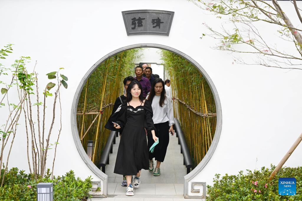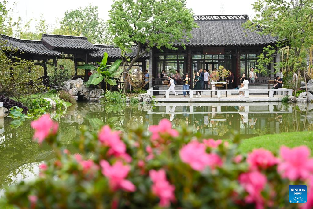 HEFEI, 26 septiembre, 2023 (Xinhua) -- Personas visitan el jardín de Suzhou en la XIV Exposición Internacional de Jardines de China (Hefei), en Hefei, en la provincia de Anhui, en el este de China, el 26 de septiembre de 2023. La exposición se inauguró en Hefei el martes, atrayendo a 38 ciudades para mostrar las características de sus jardines. (Xinhua/Zhou Mu)