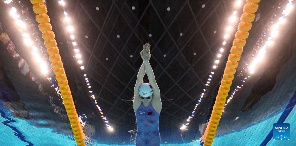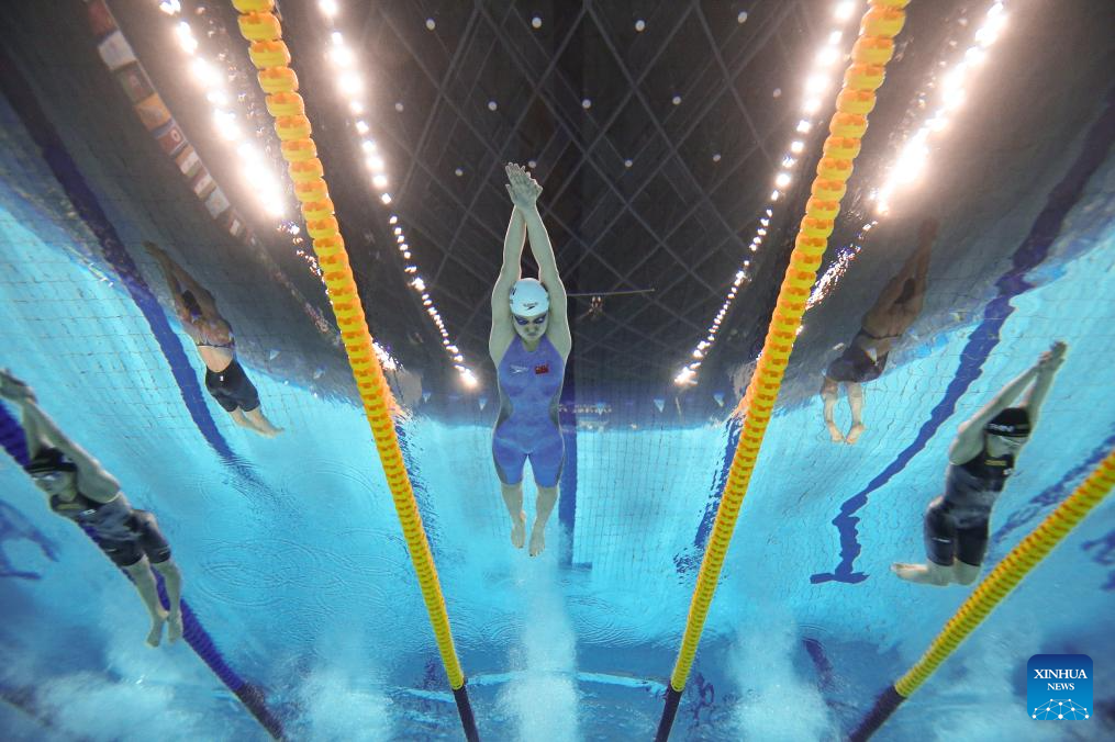 HANGZHOU, 27 septiembre, 2023 (Xinhua) -- Zhang Yufei, de China, compite durante la final femenina de 100m estilo mariposa de Natación en los XIX Juegos Asiáticos, en Hangzhou, en la provincia de Zhejiang, en el este de China, el 27 de septiembre de 2023. (Xinhua/Xia Yifang)