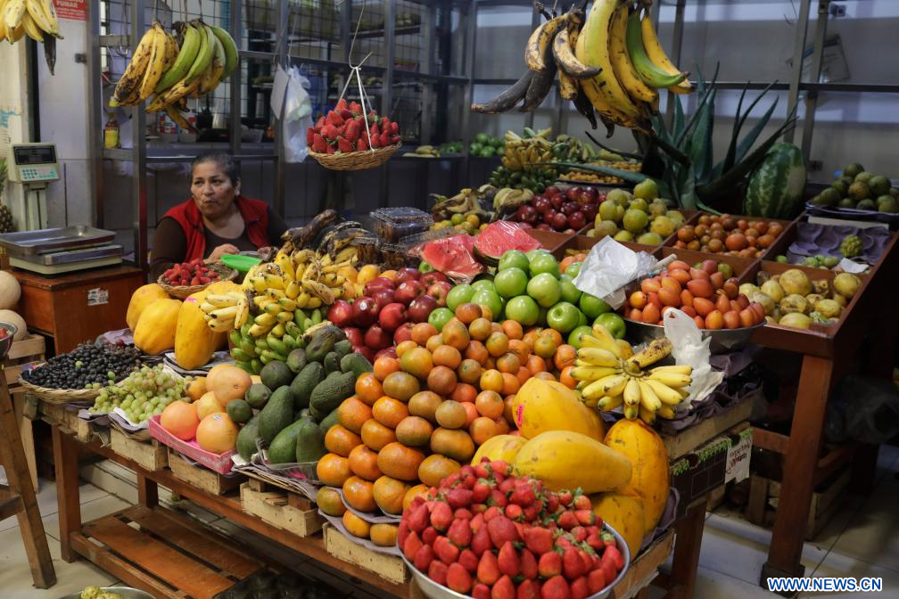 Una vendedora espera por clientes en un puesto de un mercado, en Lima, Perú, el 28 de septiembre de 2023. Es necesario que los sectores público y privado de Perú "refuercen los lazos" del trabajo preventivo para que los productores del agro no resulten afectados de sobremanera por la llegada del fenómeno climático El Niño, costero y global, afirmó el jueves el presidente de la Asociación de Exportadores (Adex), Julio Pérez Alván. (Xinhua/Mariana Bazo)