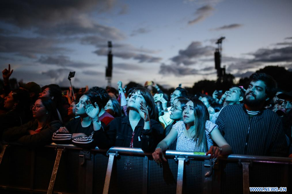 BOGOTA, 25 septiembre, 2023 (Xinhua) -- Imagen del 24 de septiembre de 2023 de personas observando la presentación de un artista durante el Festival Cordillera 2023, en el parque Simón Bolívar, en la ciudad de Bogotá, Colombia. (Xinhua/Str)