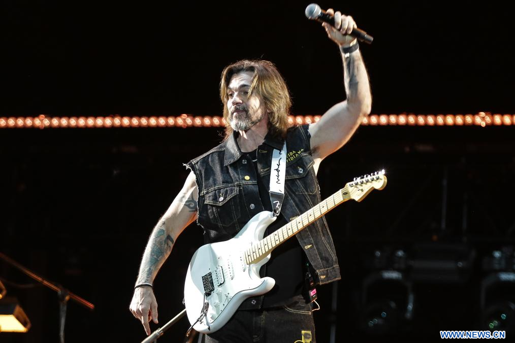 BOGOTA, 25 septiembre, 2023 (Xinhua) -- Imagen del 24 de septiembre de 2023 del artista colombiano, Juanes, realizando una presentación durante el Festival Cordillera 2023, en el parque Simón Bolívar, en la ciudad de Bogotá, Colombia. (Xinhua/Str)