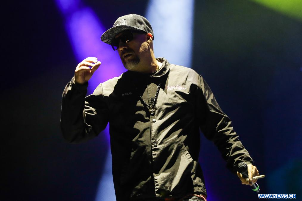 BOGOTA, 25 septiembre, 2023 (Xinhua) -- Imagen del 24 de septiembre de 2023 del artista estadounidense, B-Real, de la agrupación Cypress Hill, realizando una presentación durante el Festival Cordillera 2023, en el parque Simón Bolívar, en la ciudad de Bogotá, Colombia. (Xinhua/Str)